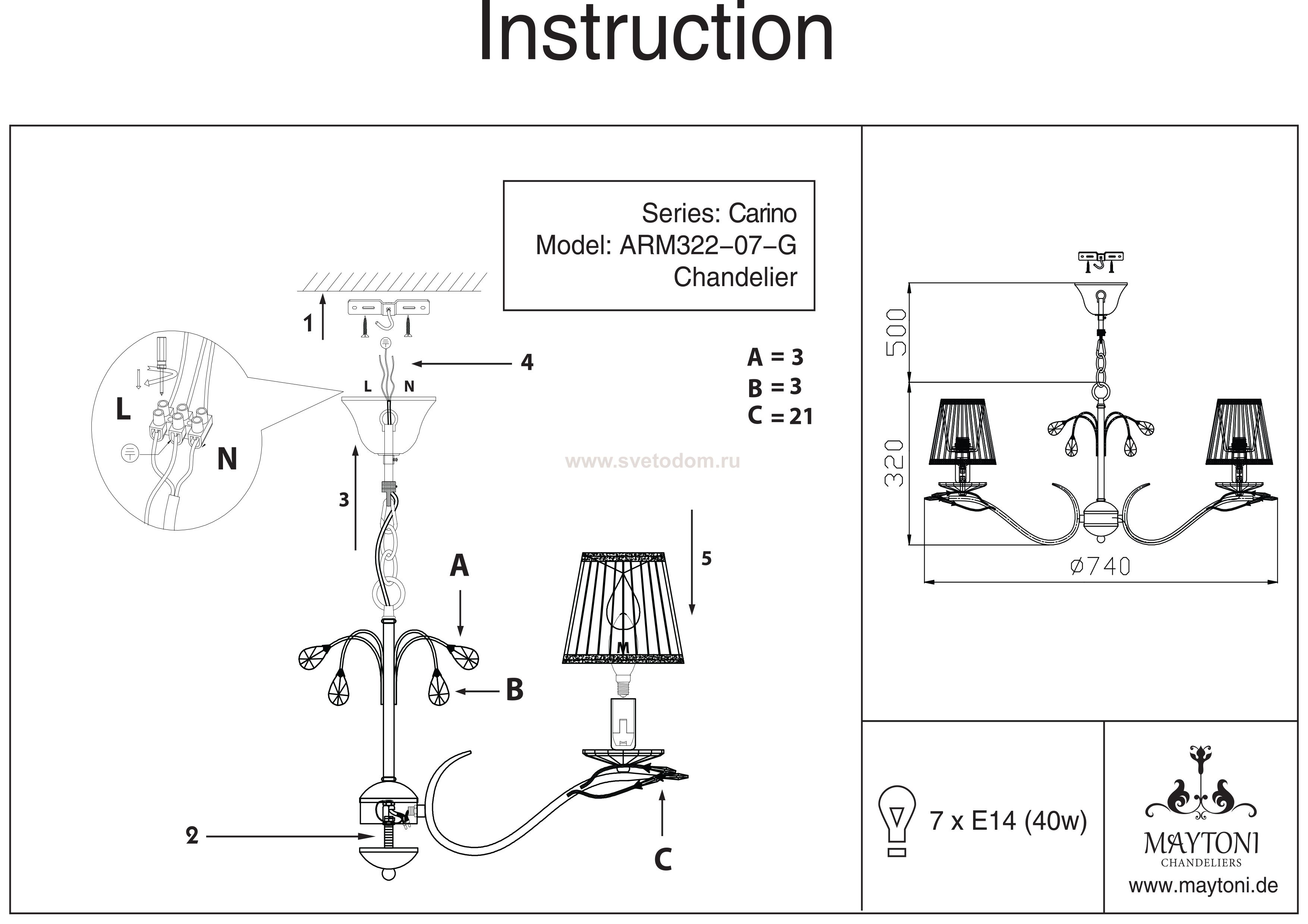 На фото вы видите подвесную люстру Maytoni Elegant ARM322-07-G, выполненную в классическом стиле. Плафоны подвесной люстры изготовлены из текстиля и прекрасно гармонируют с позолоченной арматурой. Простота и изысканность люстры – это результат дизайнерского решения специалистов от Майтони, благодаря которому люстра займет достойное место в вашем интерьере. Консультанты нашего магазина помогут вам подобрать необходимые сопутствующие товары и расскажут вам про их стоимость. А также вы можете ознакомиться с ценами, и купить другие изделия фирмы Maytoni на сайте нашего магазина lightmarket.ru