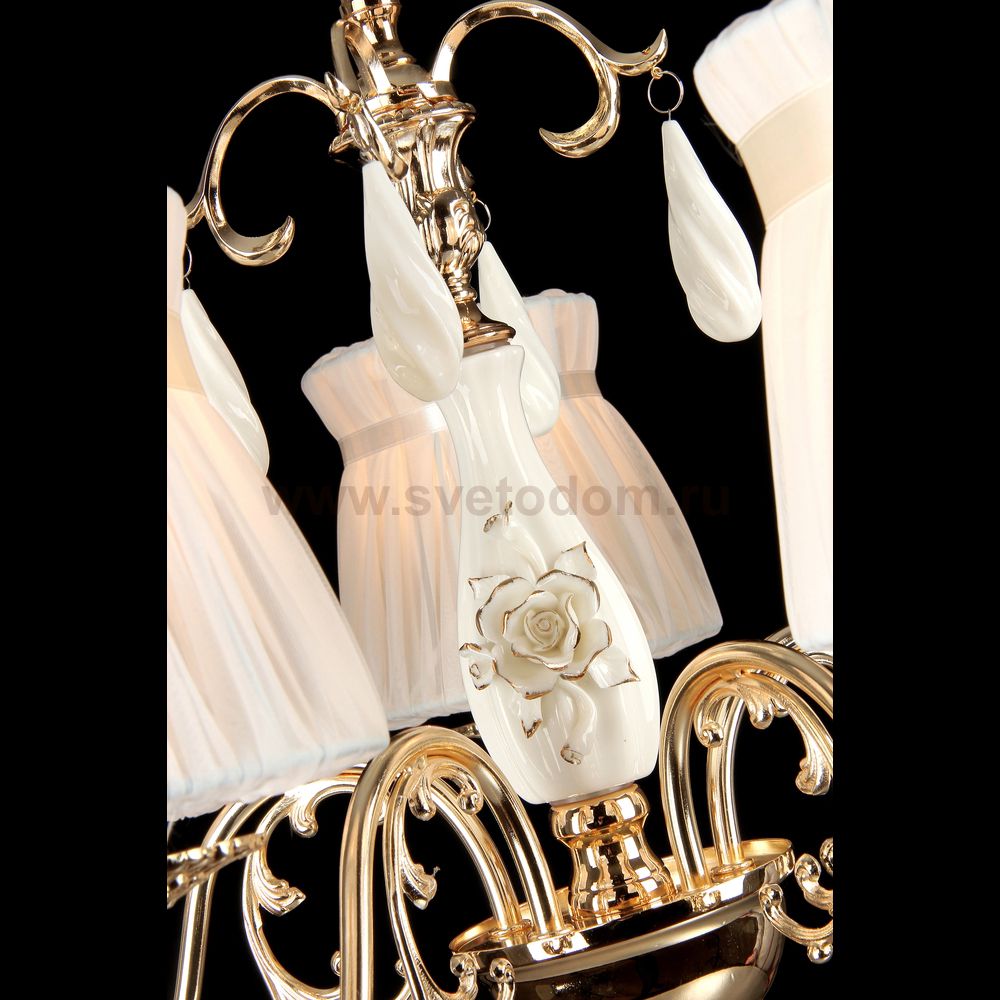 Подвесная люстра от компании Maytoni ? это невероятно милое и оригинальное изделие. Оно состоит из пяти очаровательных тканевых плафонов. Как вы можете наблюдать по фото, на каждом плафоне выполнена драпировка с помощью атласной ленточки. Это делает подвесную люстру Maytoni ARM324-05-G кокетливой и игривой. Располагаются плафоны на элегантных, изогнутых держателях, окрашенных в благородный золотой цвет. Покупая это изделие по указанной стоимости, вы получите эксклюзивный прибор от известного брендового производителя. Люстра от Майтони ? это стиль, качество и справедливая цена. |