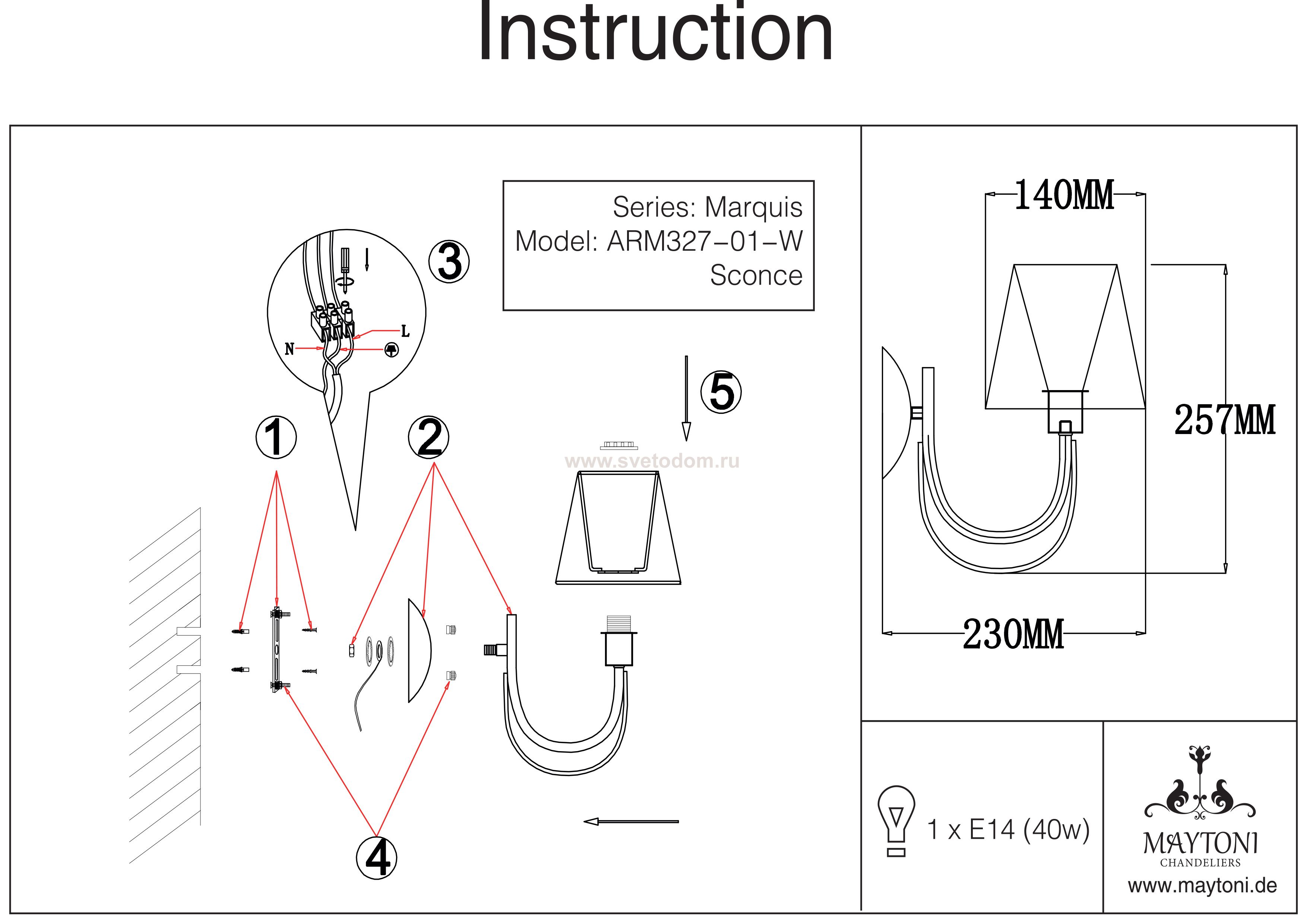 Светильник Maytoni ARM327-01-W Marquis на протяжении многих лет притягивает к себе искушенных дизайнеров и клиентов, обустраивающих квартиру или загородный дом, а также офисные или общественные места. Благодаря эстетической тонкости и технической проработанности германская модель arm327-01-w популярна в онлайн продажах на сайте и в наших "земных" магазинах сети Светодом.