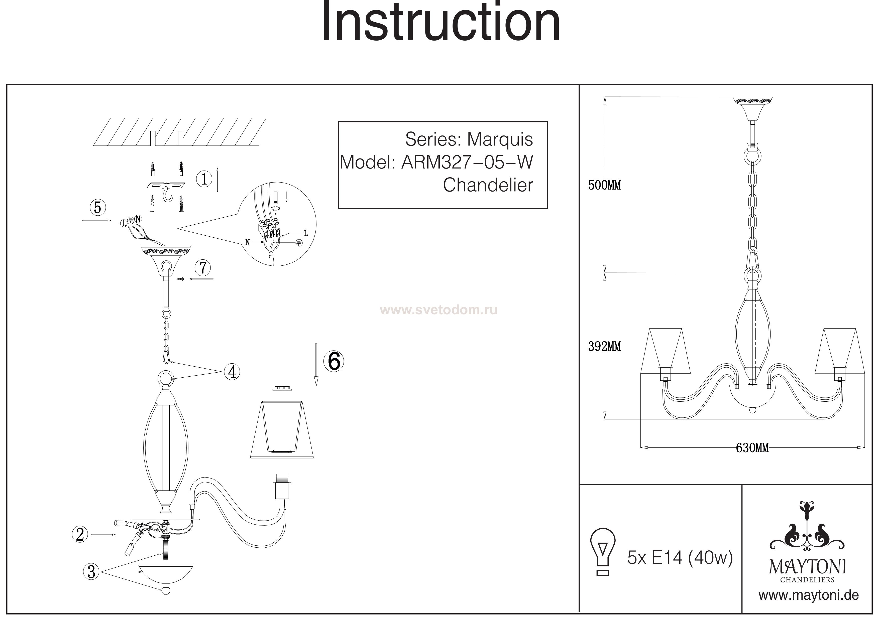 Компания «Светодом» предлагает широкий ассортимент люстр от известных производителей. Представленные в нашем каталоге товары выполнены из современных материалов и обладают отличным качеством. Благодаря широкому ассортименту Вы сможете найти у нас люстру под любой интерьер. Мы предлагаем как классические варианты, так и современные модели, отличающиеся лаконичностью и простотой форм. Стильная люстра Maytoni ARM327-05-W станет украшением любого дома. Эта модель от известного производителя не оставит равнодушным ценителей красивых и оригинальных предметов интерьера. Люстра Maytoni ARM327-05-W обеспечит равномерное распределение света по всей комнате. При выборе обратите внимание на характеристики, позволяющие приобрести наиболее подходящую модель. Купить понравившуюся люстру по доступной цене Вы можете в интернет-магазине «Светодом». |