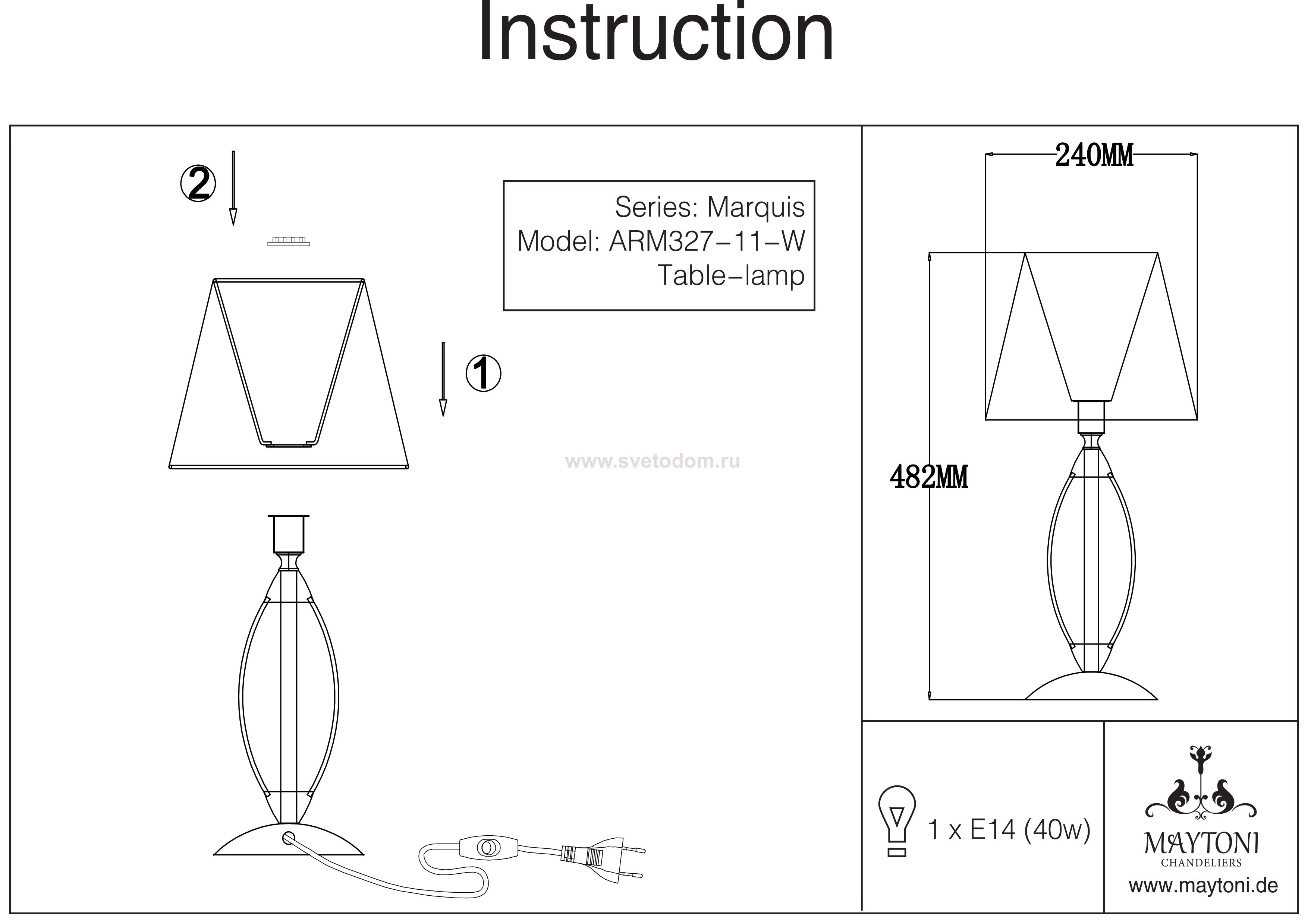 Настольная лампа – это не просто источник дополнительного освещения, но и оригинальный элемент декора. Его можно установить в спальне, гостиной, кабинете и других комнатах. Интернет-магазин «Светодом» предлагает настольные лампы разных стилей по доступным ценам. Благодаря большому ассортименту Вы обязательно найдете в нашем каталоге именно ту модель, которую искали. Настольная лампа Maytoni ARM327-11-W – прекрасный вариант для завершения интерьера. Ее можно включить одновременно с люстрой для более яркого освещения или без нее для создания уютной атмосферы, настраивающей на отдых. Купить настольную лампу Maytoni ARM327-11-W Вы можете с помощью виртуальной «Корзины» или по контактным номерам, указанным на сайте. |