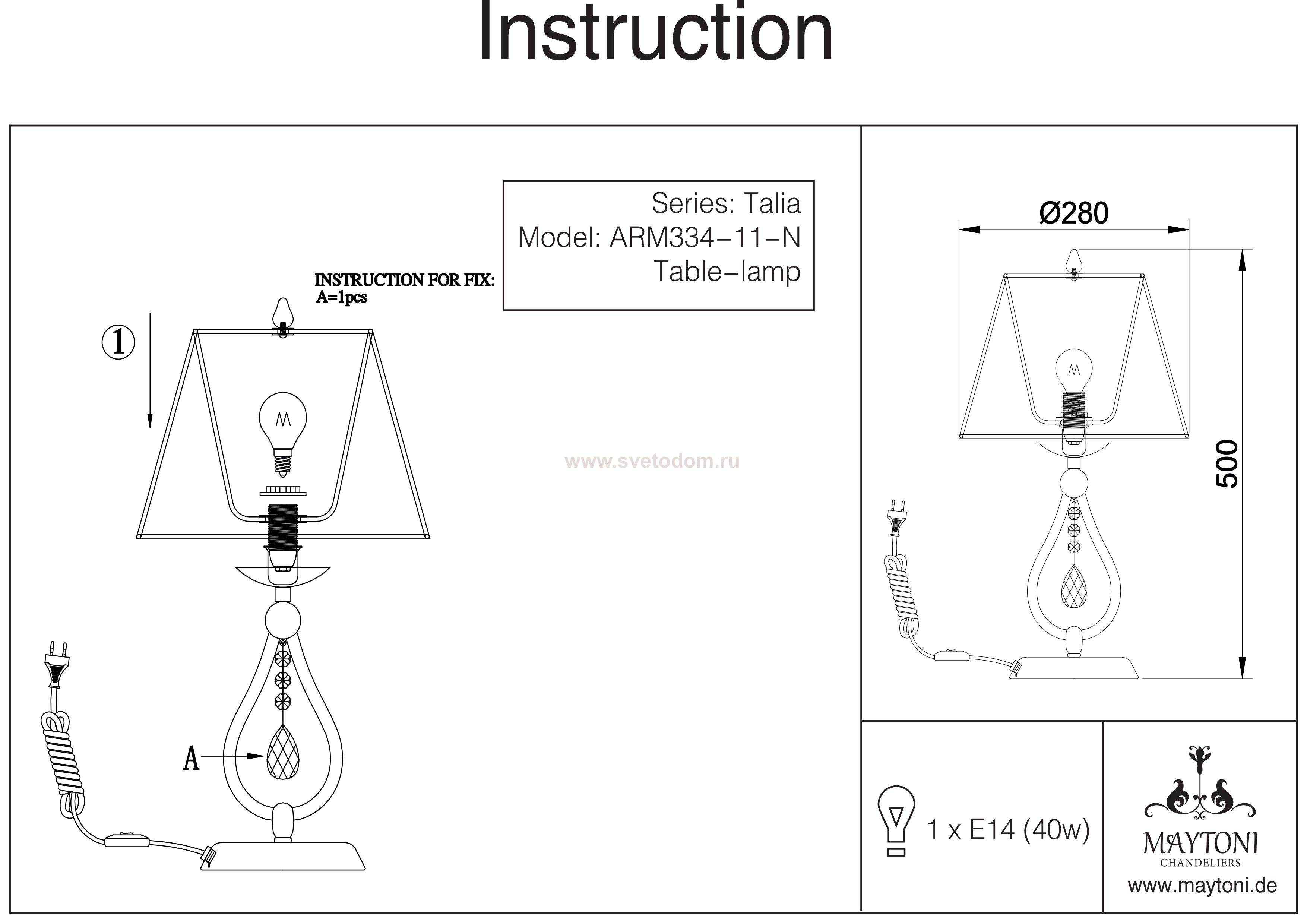100 Отзывы Светильник настольный Maytoni ARM334-11-N TaliaПока нет отзывов об этом товаре, напишите и он обязательно появится после модерации! Оставить свой отзывПохожие товары Другие товары магазина Фото