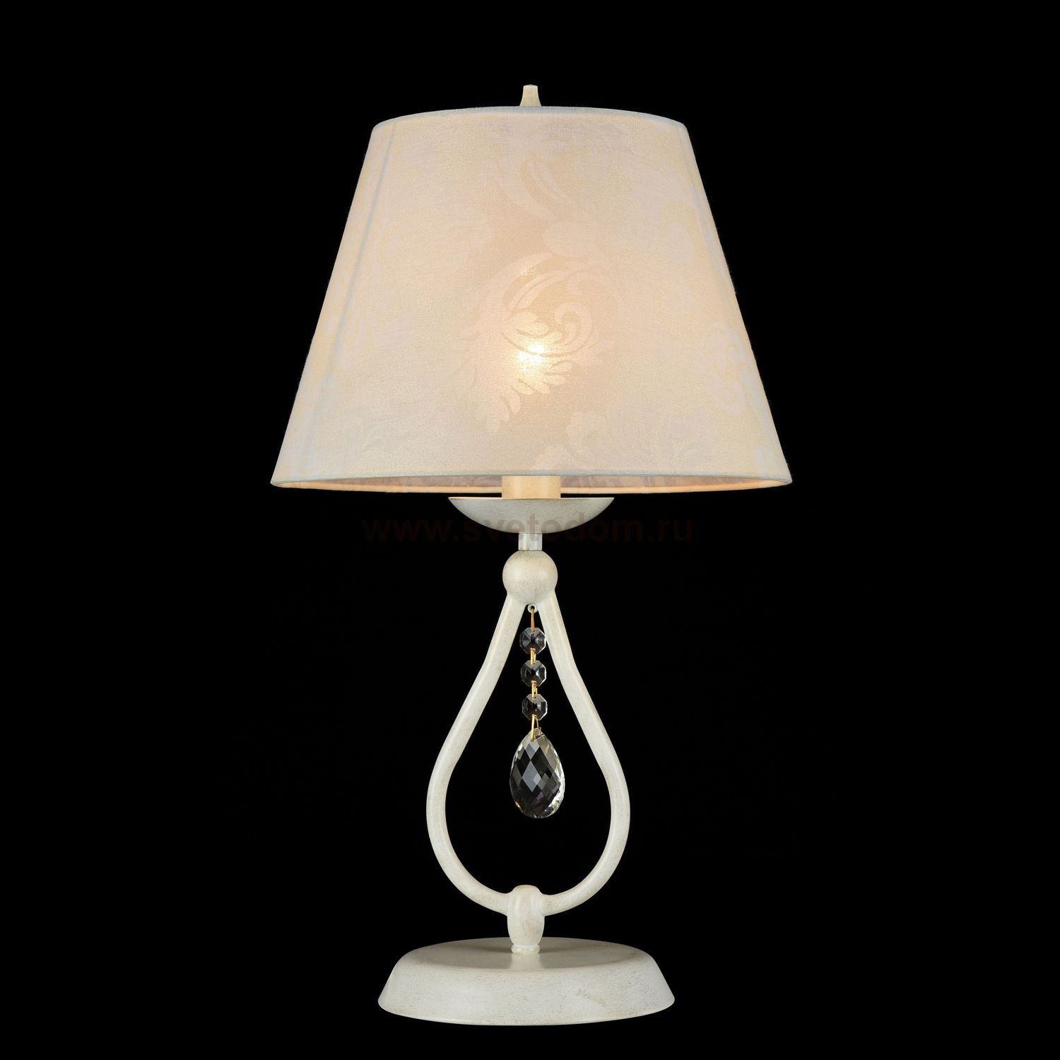 Арматура из металла. Абажур из ПВХ покрыт хлопком. Подвески из *хрусталя. Дополнительно