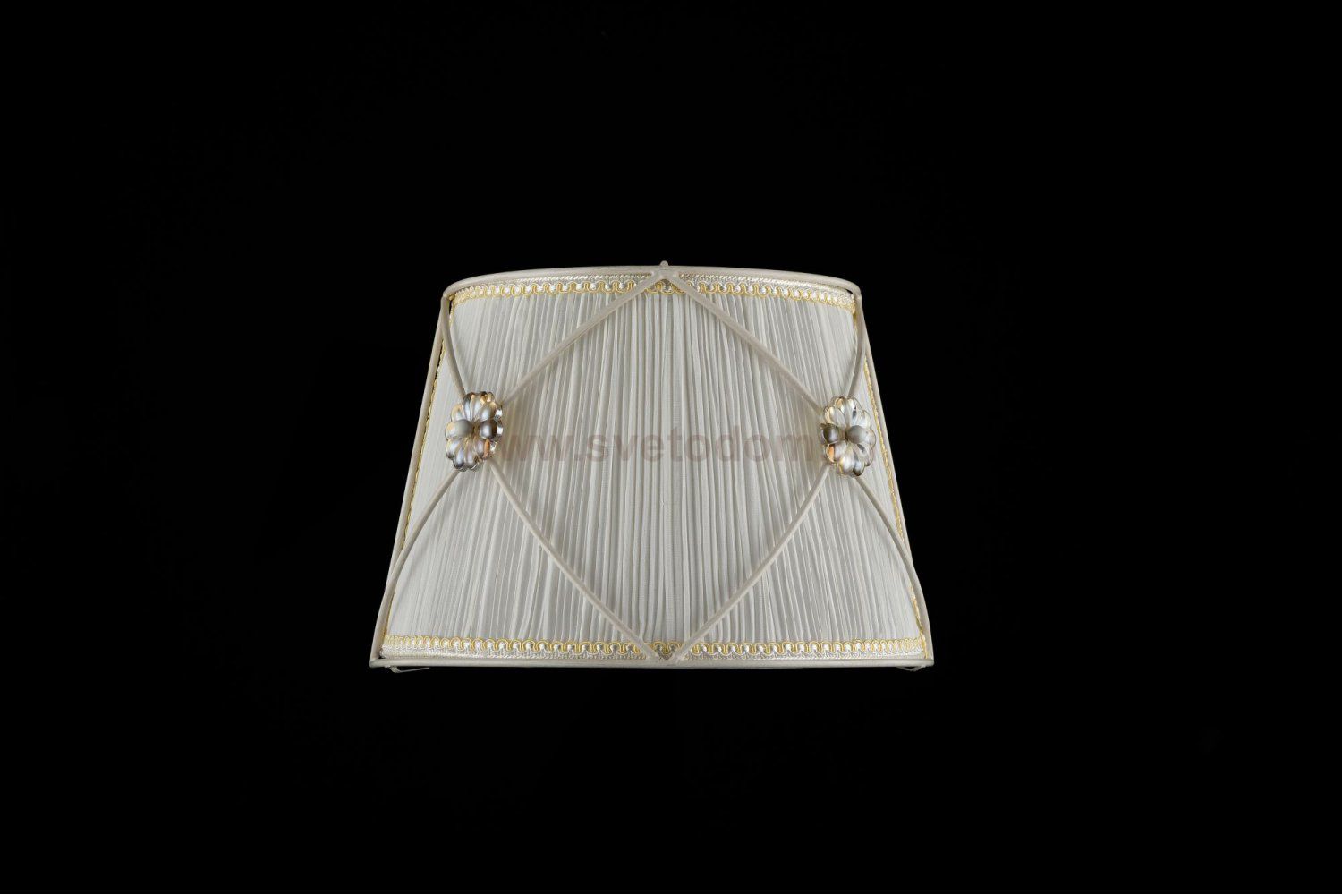 Выполненно с тонким вкусом из качественных материалов. Нежно-бежевый тканевый абажур, сочетание с металлической основой в белом цвете, а также украшения в виде цветов делают бра образцом классического стиля.