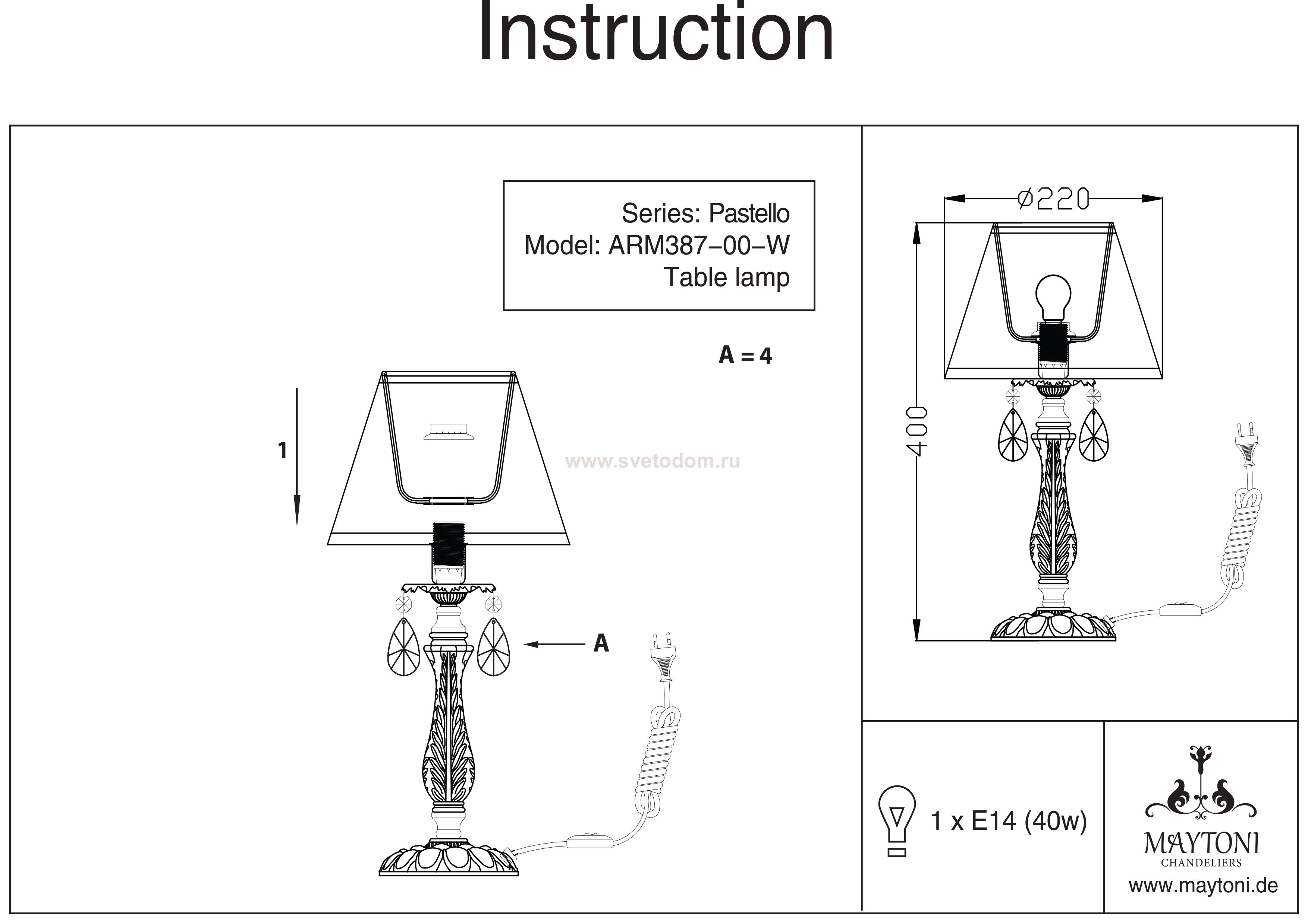 100 Отзывы Настольная лампа Maytoni ARM387-00-W Elegant PastelloПока нет отзывов об этом товаре, напишите и он обязательно появится после модерации! Оставить свой отзывПохожие товары Другие товары магазина Фото