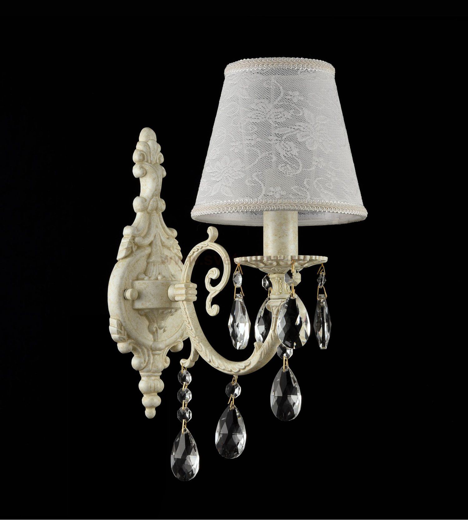 Особенности модели ARM390-01-W: Арматура из металла. Абажур декорирован кружевом. Подвески из *хрусталя.