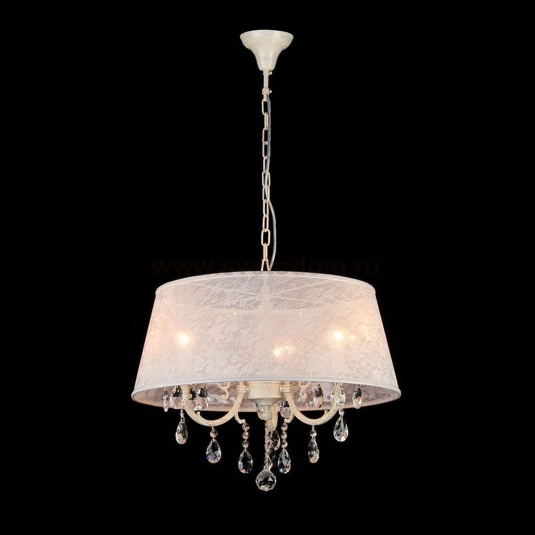 Арматура из металла. Абажур декорирован кружевом. Подвески из *хрусталя. Комментарий