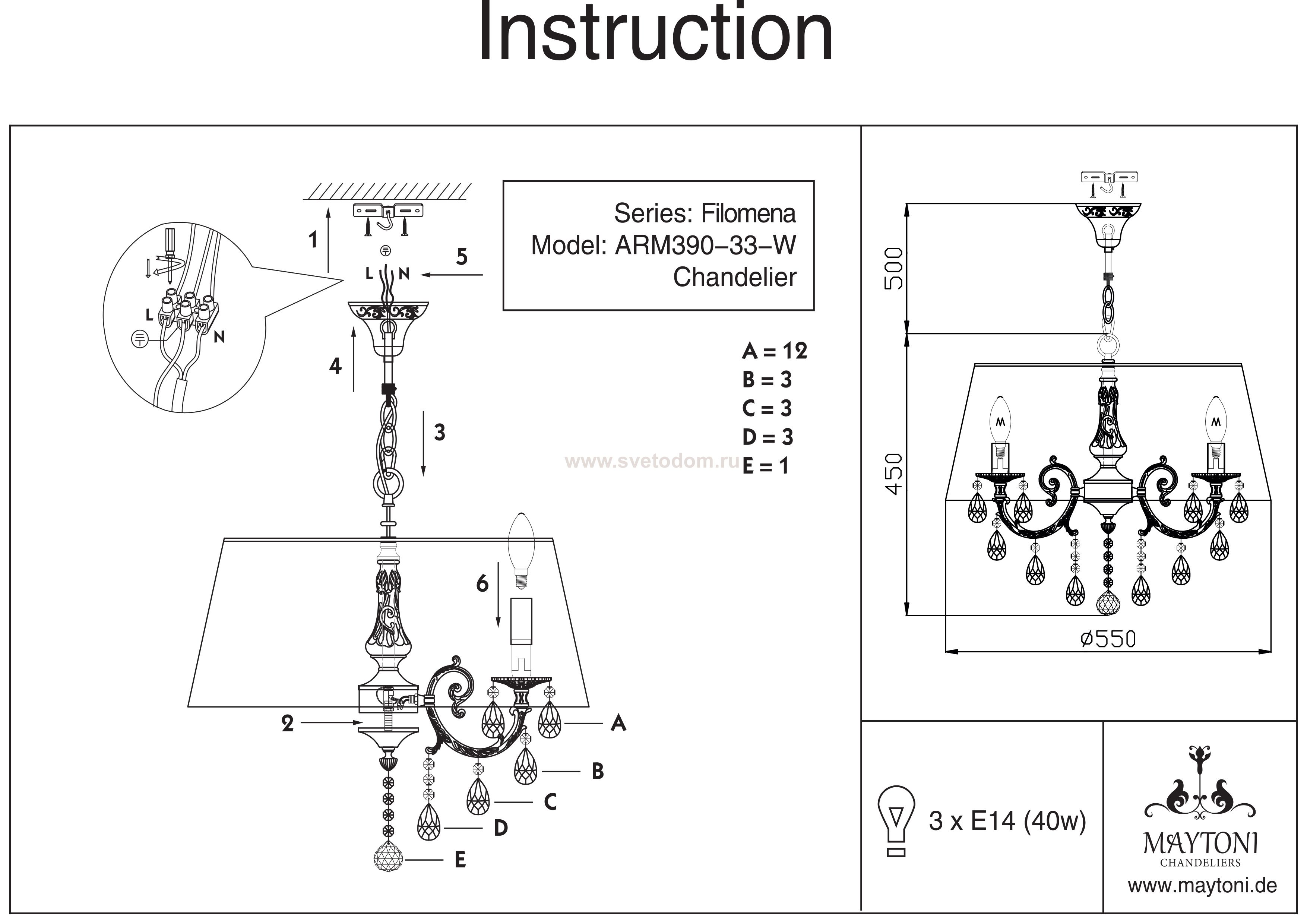 Максимальная потребляемая мощность лампы, которую можно использовать в люстре.