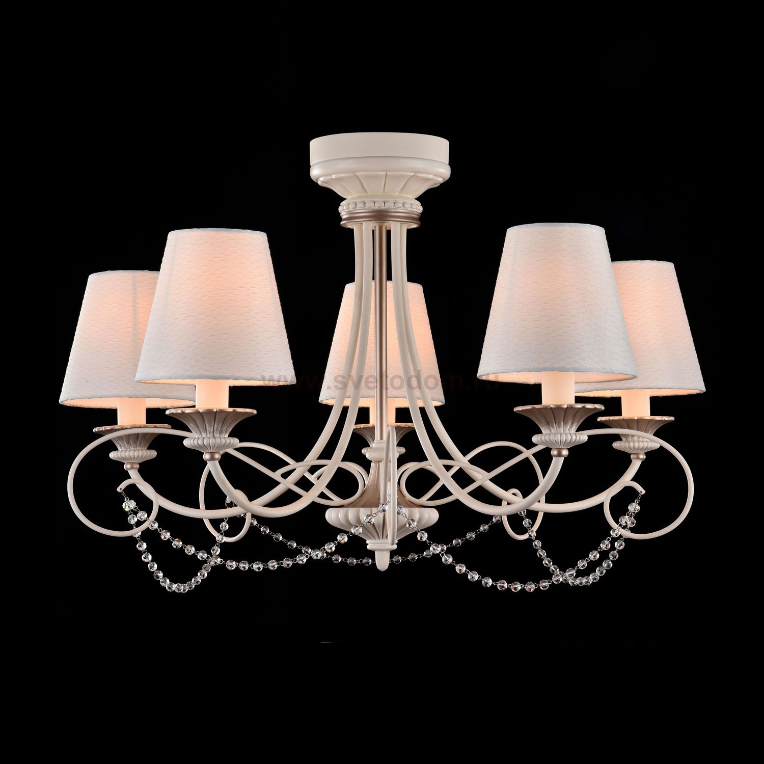 Арматура из металла. Подвески из стеклянных бусин. Абажур из ПВХ покрыт белой фактурной тканью. Дополнительно