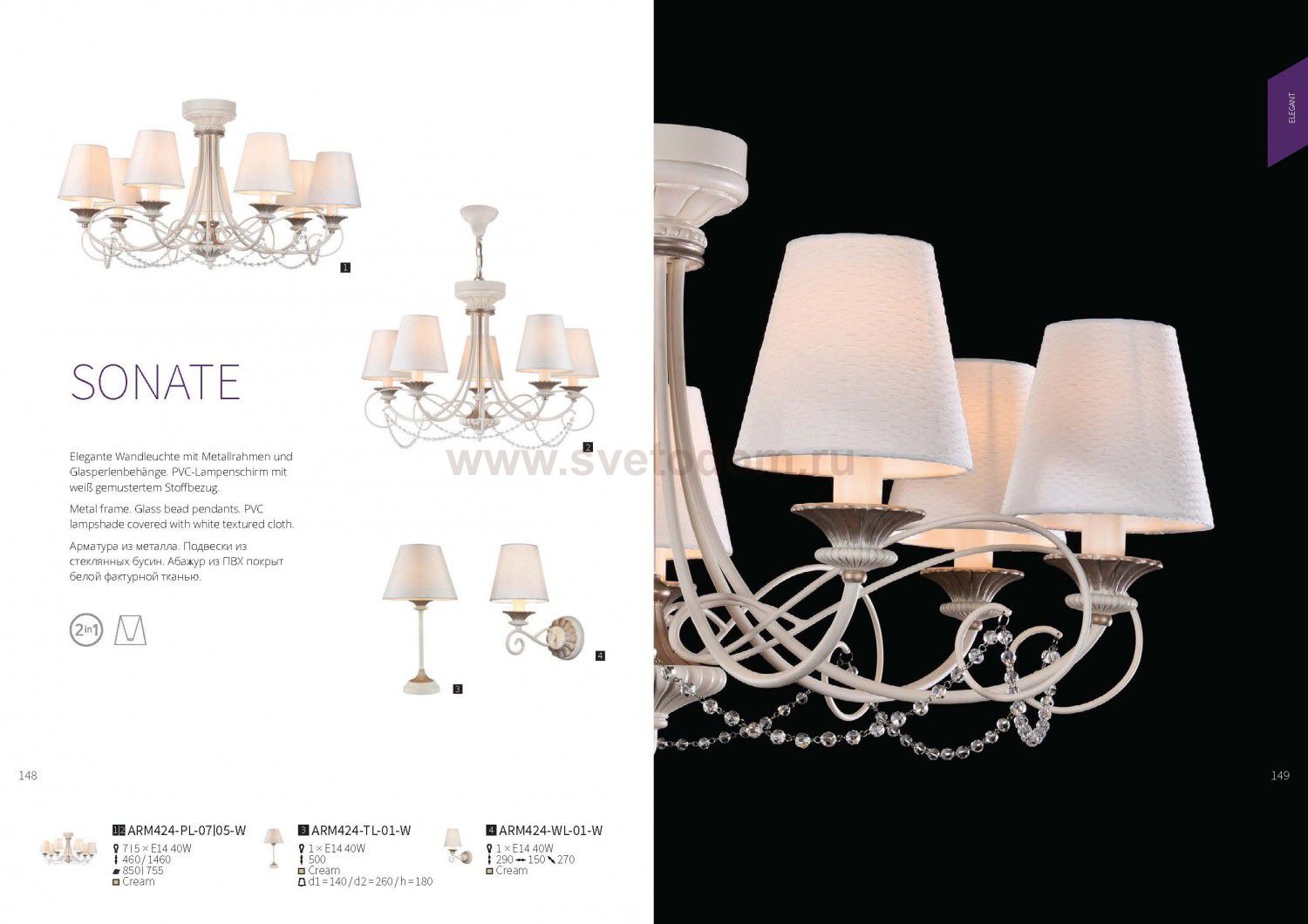 Люстра Maytoni ARM424-PL-07-W Sonate на протяжении многих лет притягивает к себе искушенных дизайнеров и клиентов, обустраивающих квартиру или загородный дом, а также офисные или общественные места. Благодаря эстетической тонкости и технической проработанности германская модель ARM424-PL-07-W популярна в онлайн продажах на сайте и в наших "земных" магазинах сети Светодом.