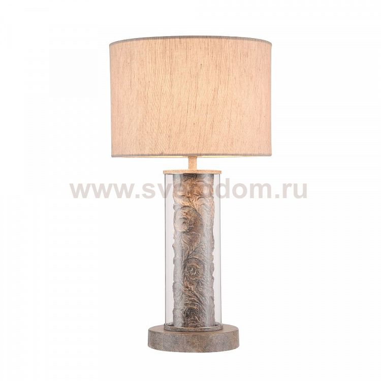 Комбинированный каркас из полирезина и прозрачного стекла. Абажур из ПВХ покрыт тканью. Цвет плафона / абажура