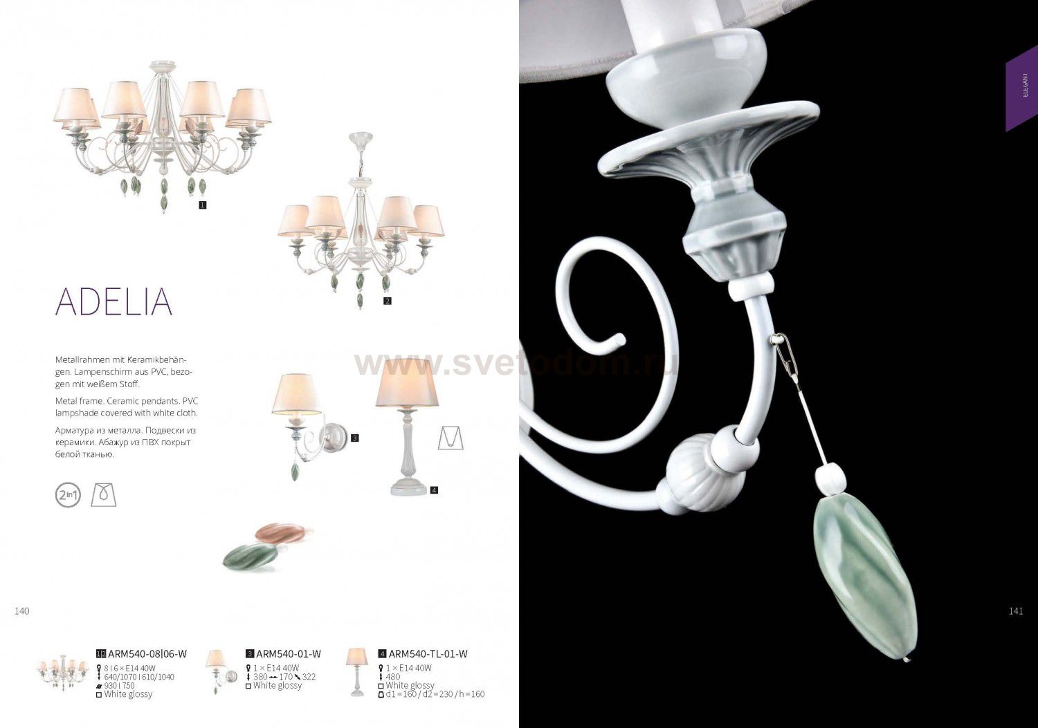 Особенности модели ARM540-01-W: Большое количество деталей из керамики, покрытых глазурью пастельных цветов, формируют нежный и воздушный образ светильников серии. Арматура изготовлена из металла и покрашена жемчужной белой краской. Перекликаясь по цвету с керамикой, она придает конструкции визуальную целостность. Абажуры изготовлены из хлопка на ПВХ. Универсальное крепление "2 в 1" позволяет монтировать люстры с использованием цепи или без нее.