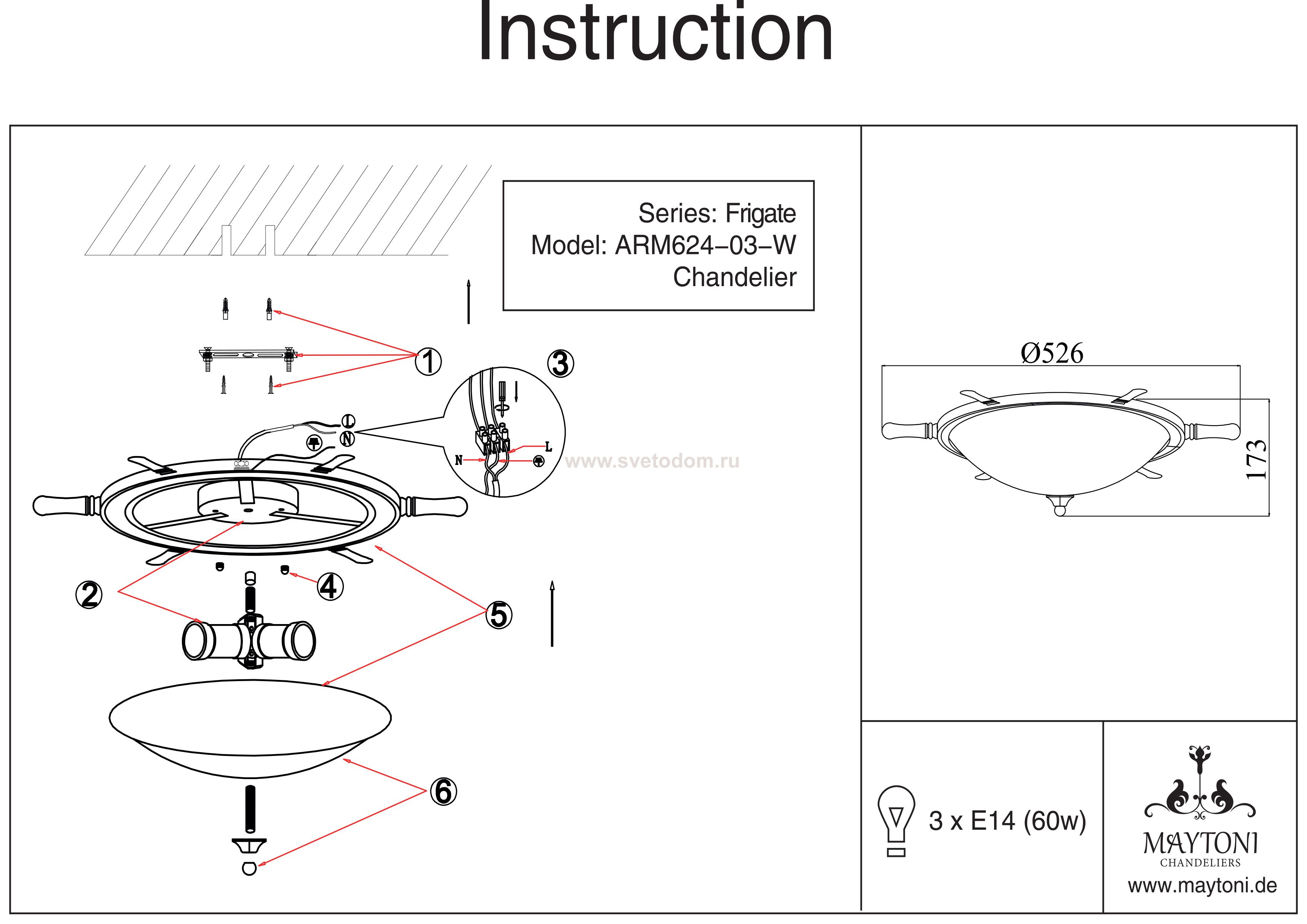 Светильник штурвал Maytoni ARM624-03-W Frigate на протяжении многих лет притягивает к себе искушенных дизайнеров и клиентов, обустраивающих квартиру или загородный дом, а также офисные или общественные места. Благодаря эстетической тонкости и технической проработанности германская модель ARM624-03-W популярна в онлайн продажах на сайте и в наших "земных" магазинах сети Светодом.