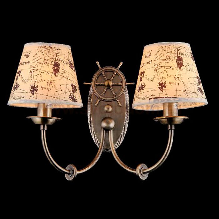 Арматура из металла. Декоративные элементы: якорь, штурвал, трос, фирменная гравировка. Абажур из ПВХ покрыт тканью с рисунком. Комментарий