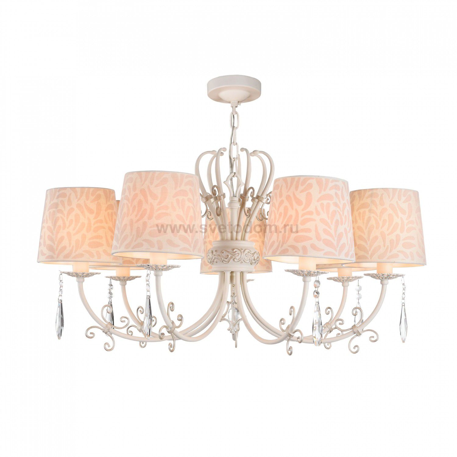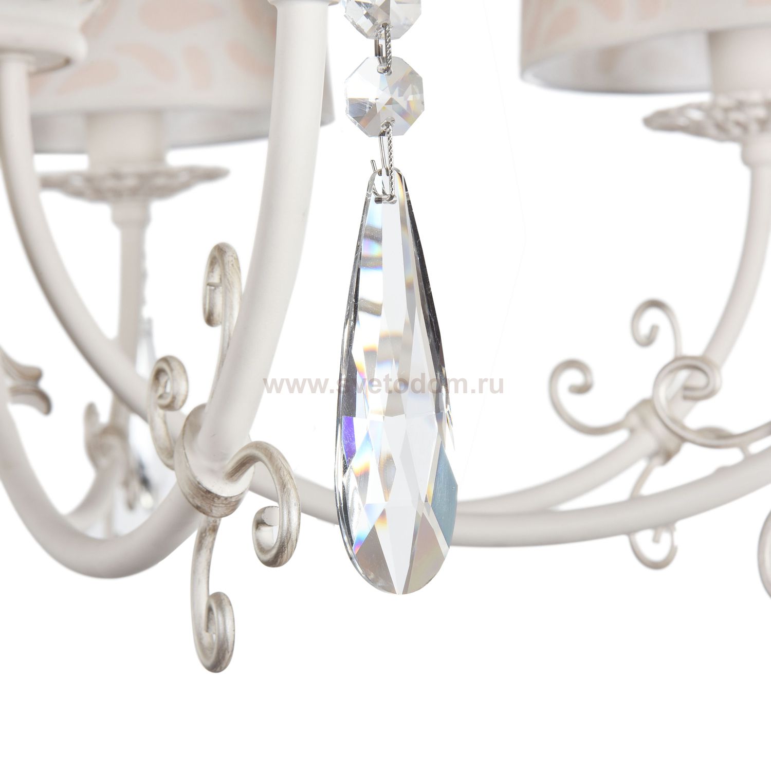Арматура из металла. Абажур из ПВХ покрыт тканью с рельефным узором. Подвески из *хрусталя. Дополнительно