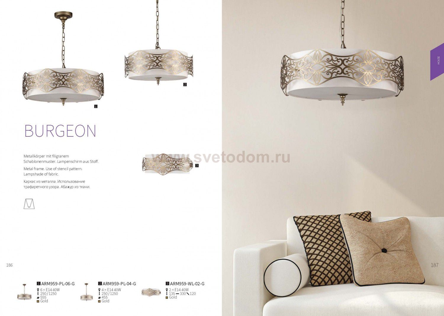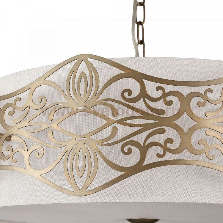 Особенности модели ARM959-PL-06-G: Просечной орнамент опоясывает абажуры и является главным украшением светильников серии. Классический узор хорошо читается на фоне светлой ткани. Арматура светильников изготовлена из металла и выкрашена в бронзовый цвет. Нижняя часть подвесных светильников обтянута тканью из хлопка на ПВХ, что способствует мягкому рассеиванию света. Высота подвесных светильников регулируется длиной цепи.