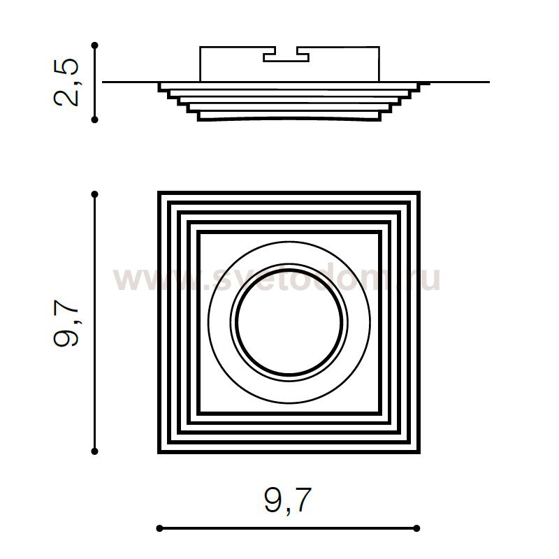 Данный размер указывает какое отверстие необходимо сделать для правильного монтажа. Зачастую светильники выбирают после ремонта и сделанных монтажных отверстий, тогда подбор осуществляется строго в размер +/- 2-5мм.