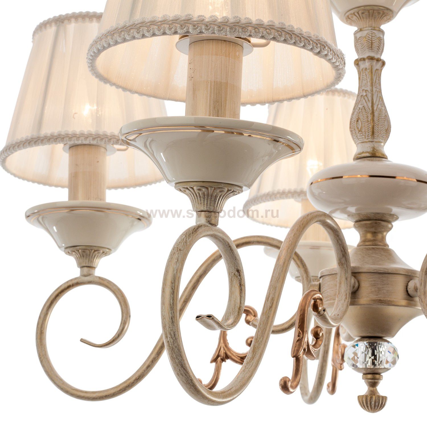 Люстра классическая B11129/5 от бренда BenCrezo. Каркас выполнен из материала металл, цвет античный белый. Плафоны (светорассеиватели) выполнены из материала текстиль, цвет белый. Цоколь E14 рассчитан на лампы максимальной мощности до 60 Вт, а максимальная площадь освещения составит до 11 м?.