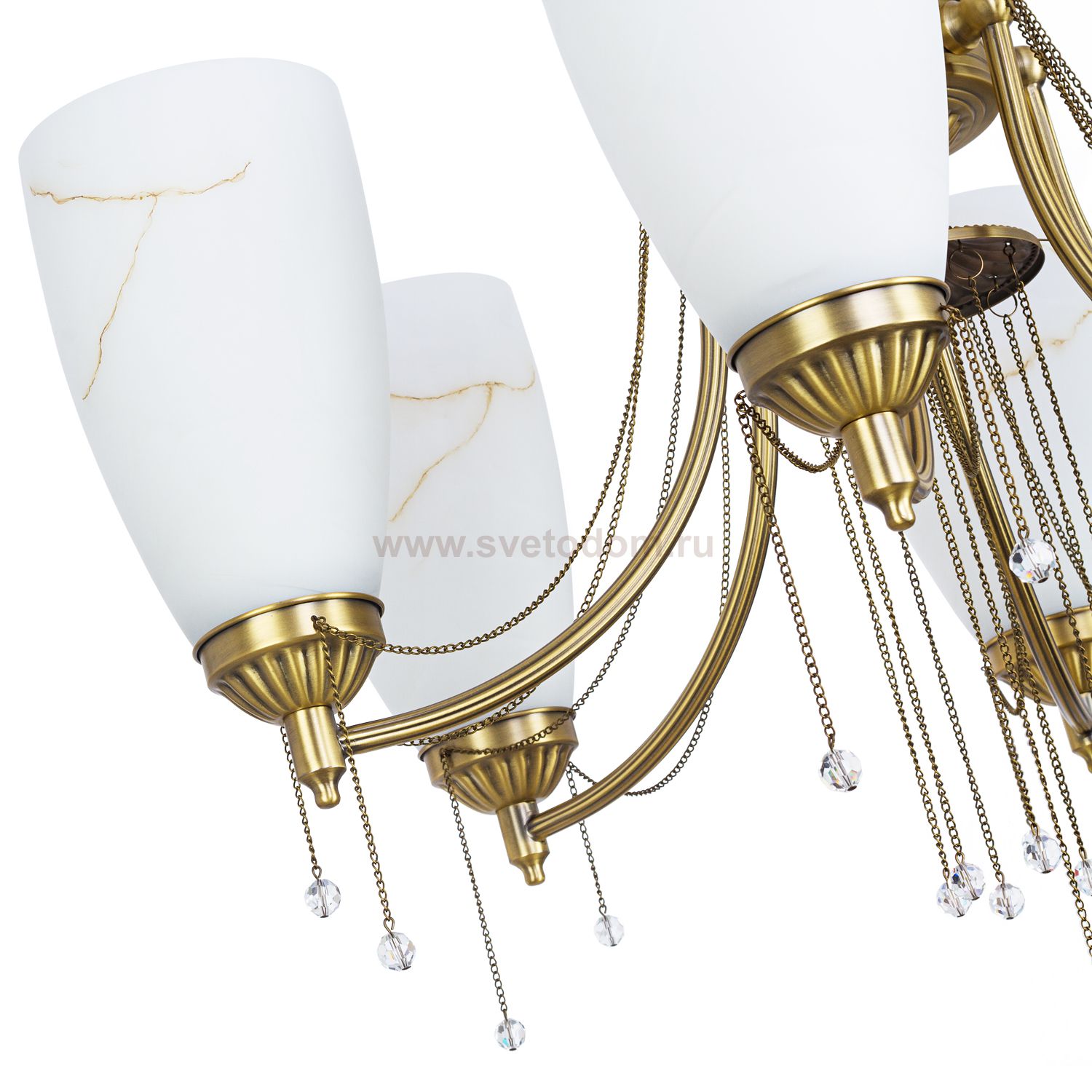 Люстра классическая с хрусталем B11179/6ABP от бренда BenCrezo. Каркас выполнен из материала металл, цвет античная бронза. Плафоны (светорассеиватели) выполнены из материала стекло, цвет белый. Цоколь E27 рассчитан на лампы максимальной мощности до 60 Вт, а максимальная площадь освещения составит до 13 м?.