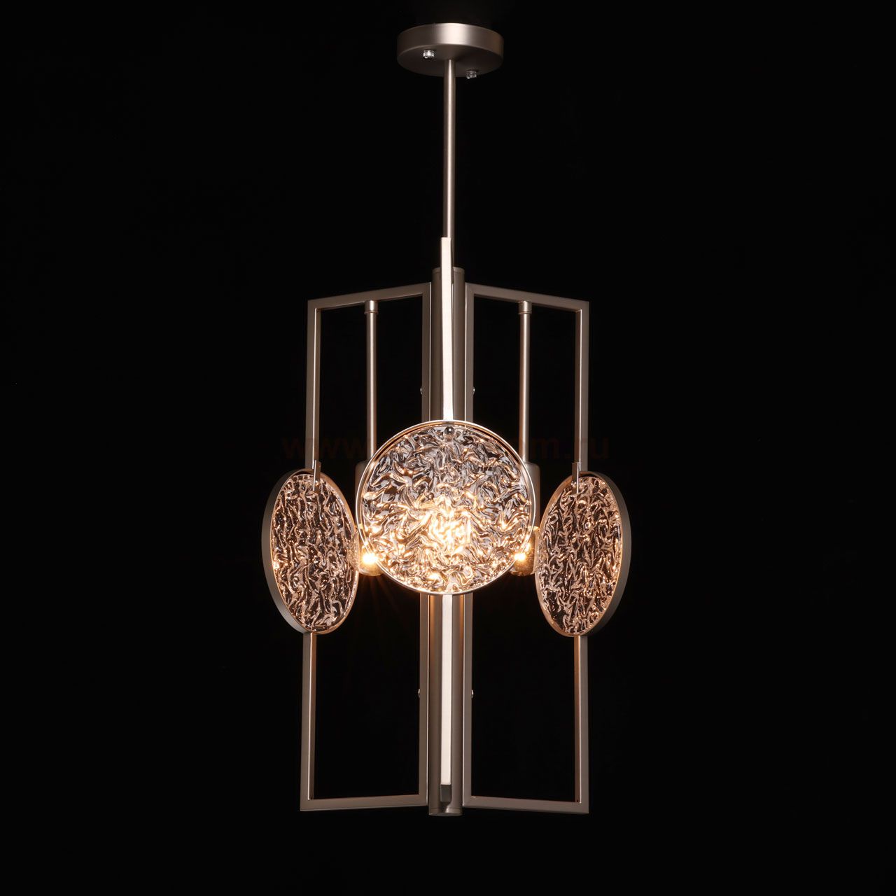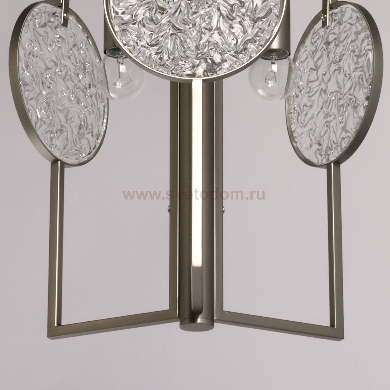 Металлическое основание подвесной люстры гальванизировано в цвет матового никеля. Декор выполнен из прозрачного фактурного стекла. Комментарий