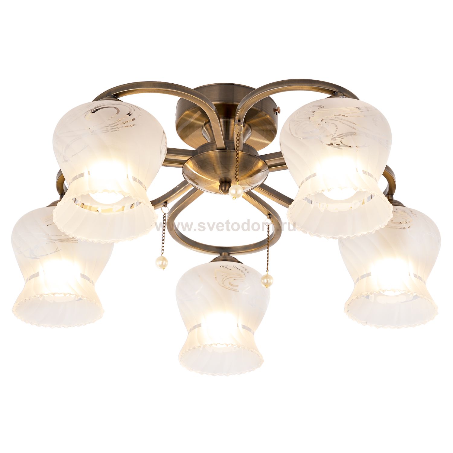 Люстра классическая 50836/5AB WT от бренда ЭкономСвет. Каркас выполнен из материала металл, цвет античная бронза. Плафоны (светорассеиватели) выполнены из материала стекло, цвет белый. Цоколь E27 рассчитан на лампы максимальной мощности до 60 Вт, а максимальная площадь освещения составит до 11 м?.