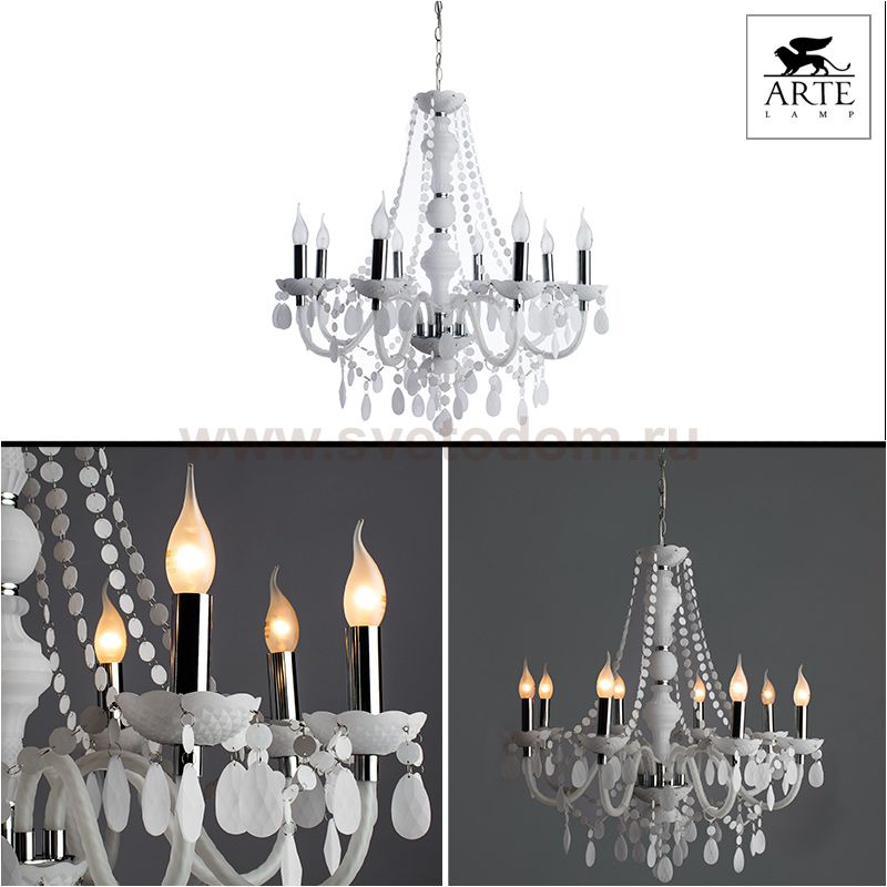 Компания «Светодом» предлагает широкий ассортимент люстр от известных производителей. Представленные в нашем каталоге товары выполнены из современных материалов и обладают отличным качеством. Благодаря широкому ассортименту Вы сможете найти у нас люстру под любой интерьер. Мы предлагаем как классические варианты, так и современные модели, отличающиеся лаконичностью и простотой форм. Стильная люстра Arte lamp A8888LM-8WH станет украшением любого дома. Эта модель от известного производителя не оставит равнодушным ценителей красивых и оригинальных предметов интерьера. Люстра Arte lamp A8888LM-8WH обеспечит равномерное распределение света по всей комнате. При выборе обратите внимание на характеристики, позволяющие приобрести наиболее подходящую модель. Купить понравившуюся люстру по доступной цене Вы можете в интернет-магазине «Светодом».