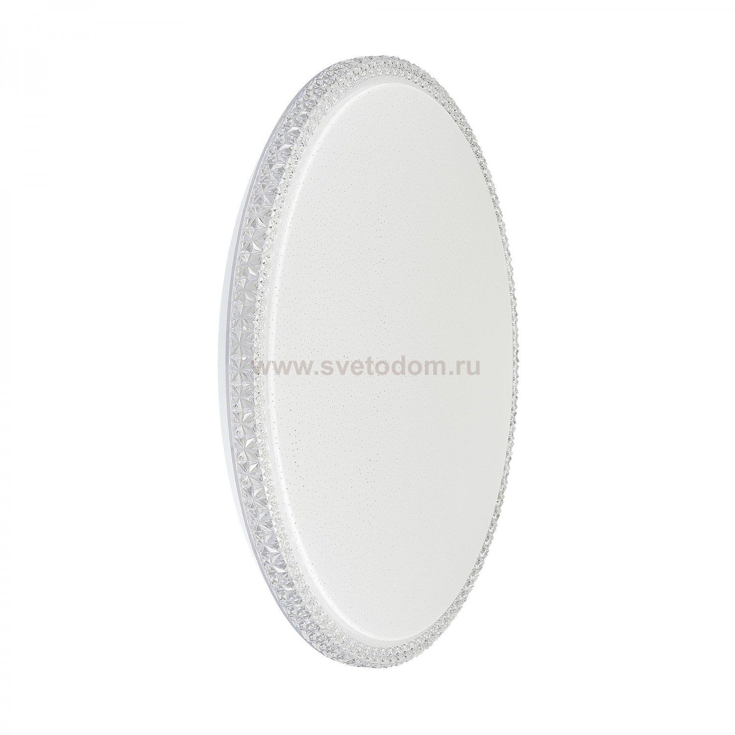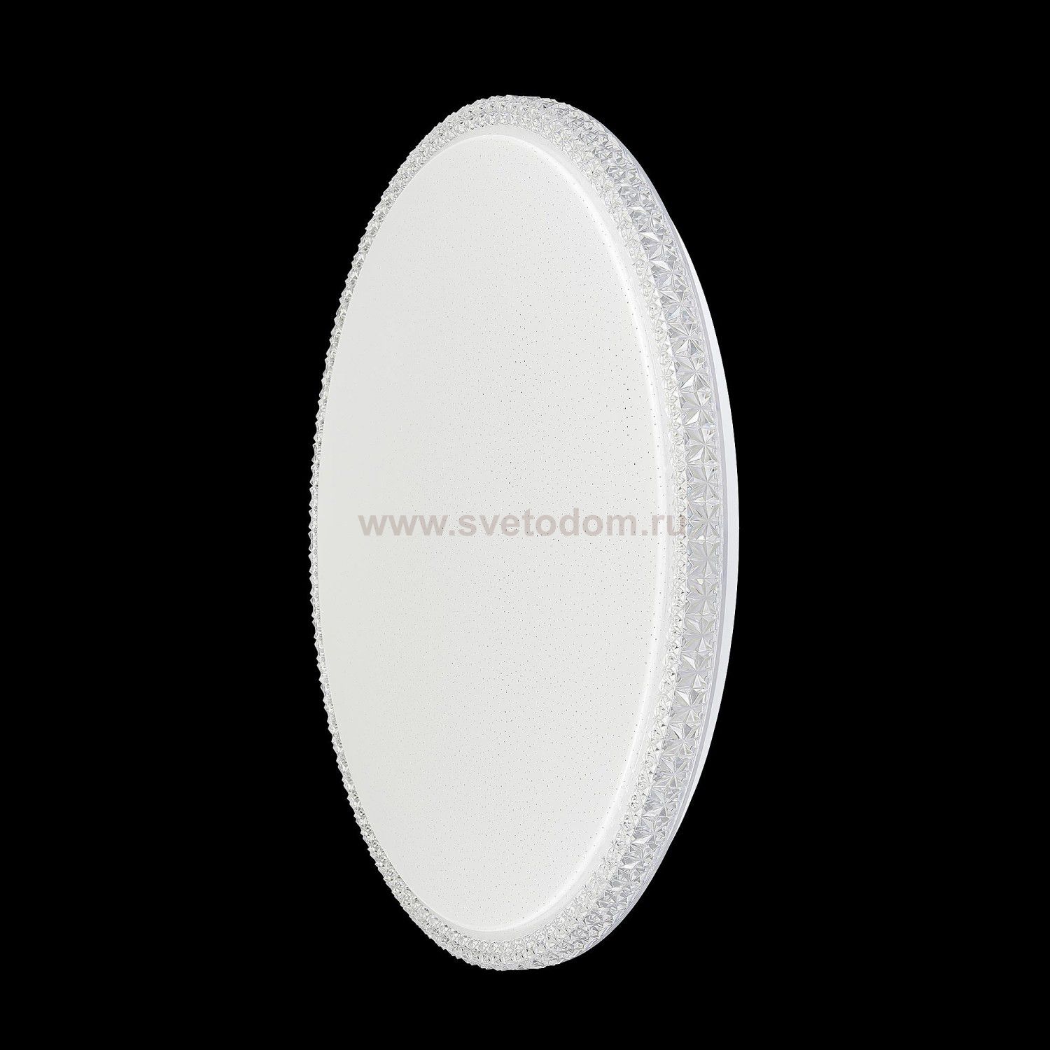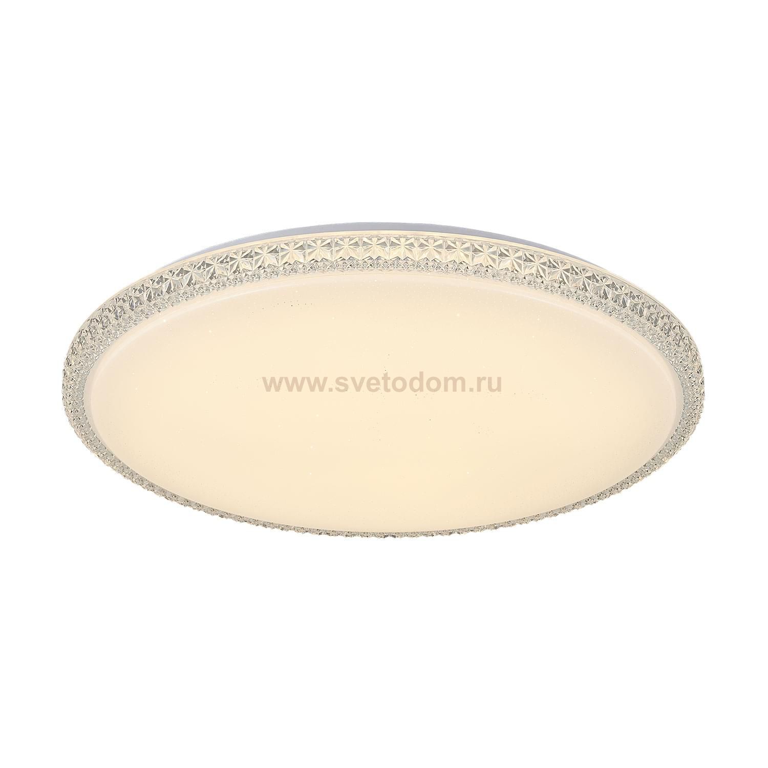Диаметр 60см, Высота 7,5см, Светодиодный светильник мощностью 72Вт с хрустальным эффектом на ободе и эффектом "старлайт" на матовом рассеивателе, Уровни мощности 100-50-5% управляются обычным выключателем Комментарий