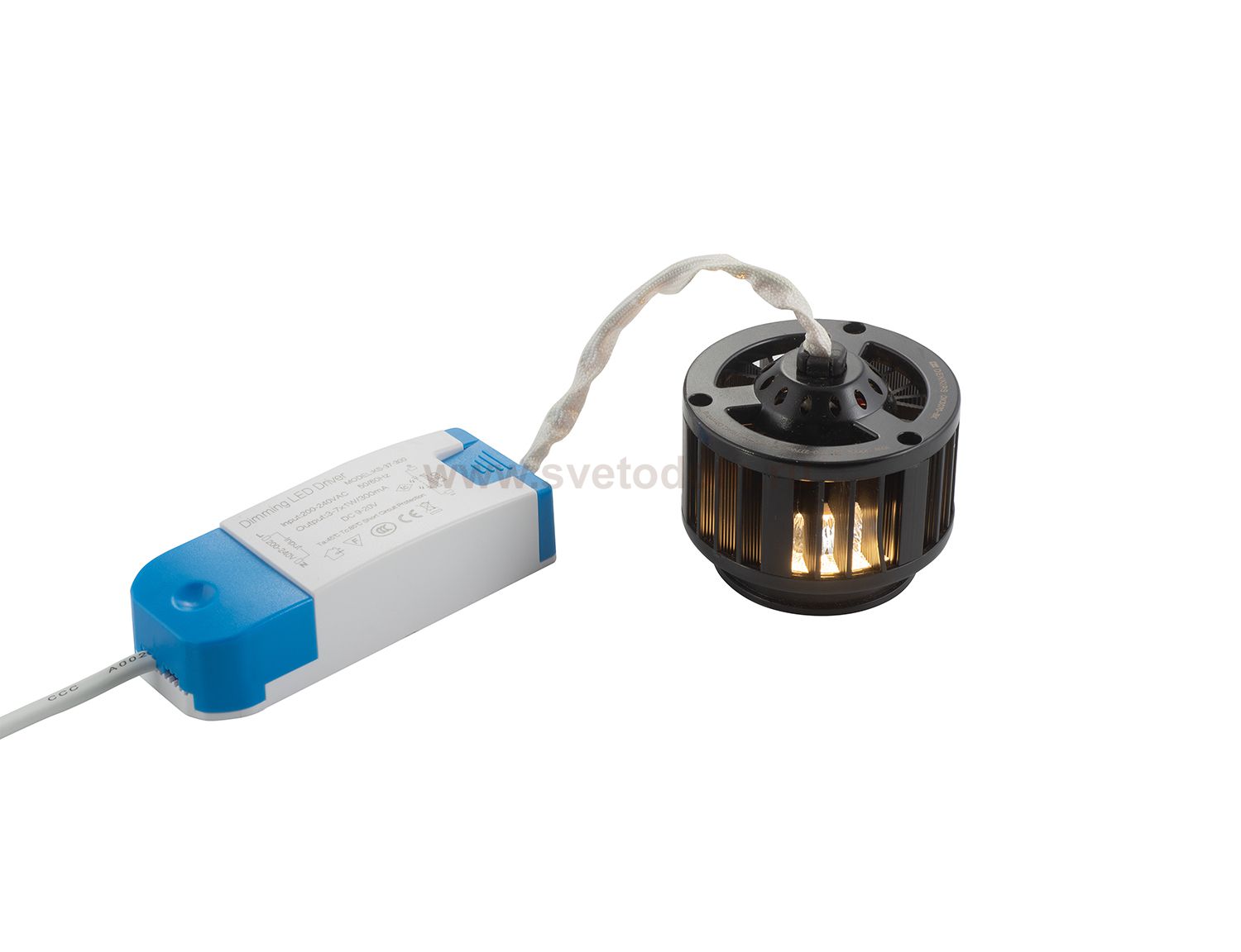 Сменный светодиодный модуль с управлением TRIAC и драйвером для точечных светильников. Размер блока питания: 110x26x39мм.