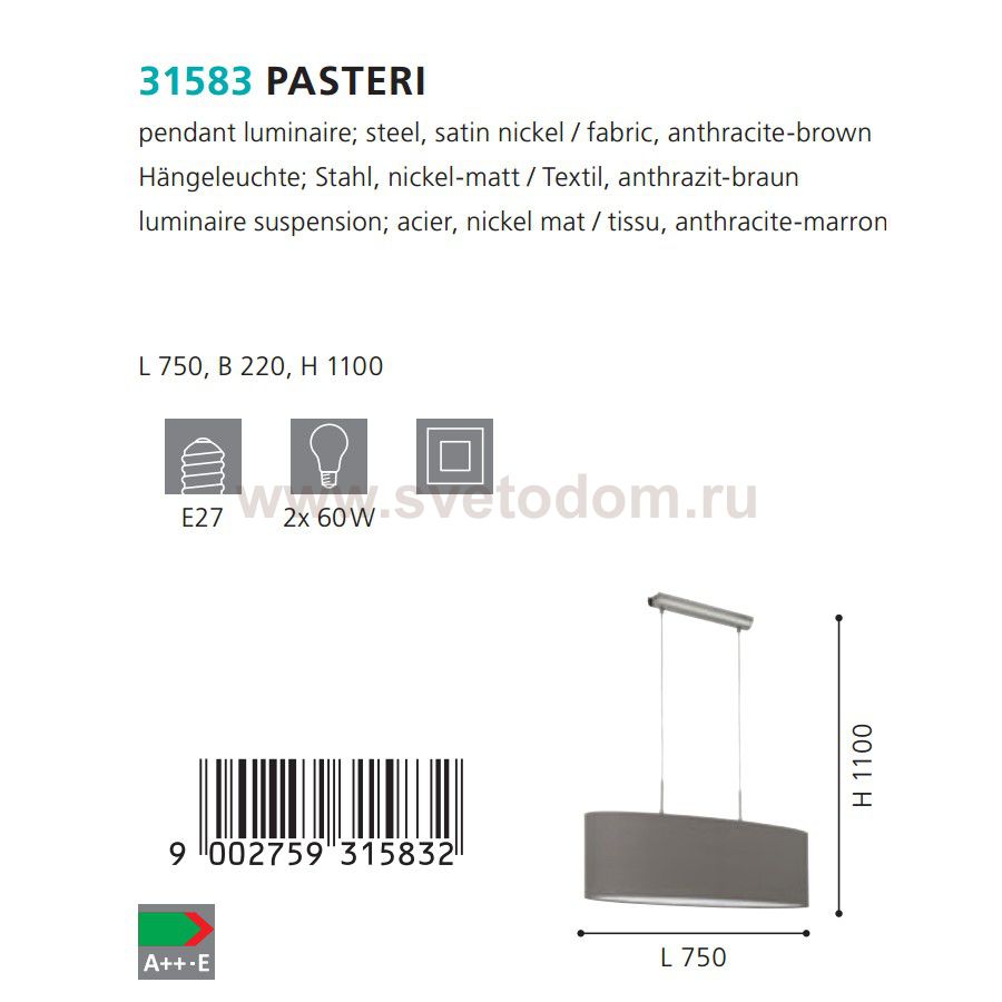 Подвесной потолочный светильник (люстра) PASTERI Комментарий