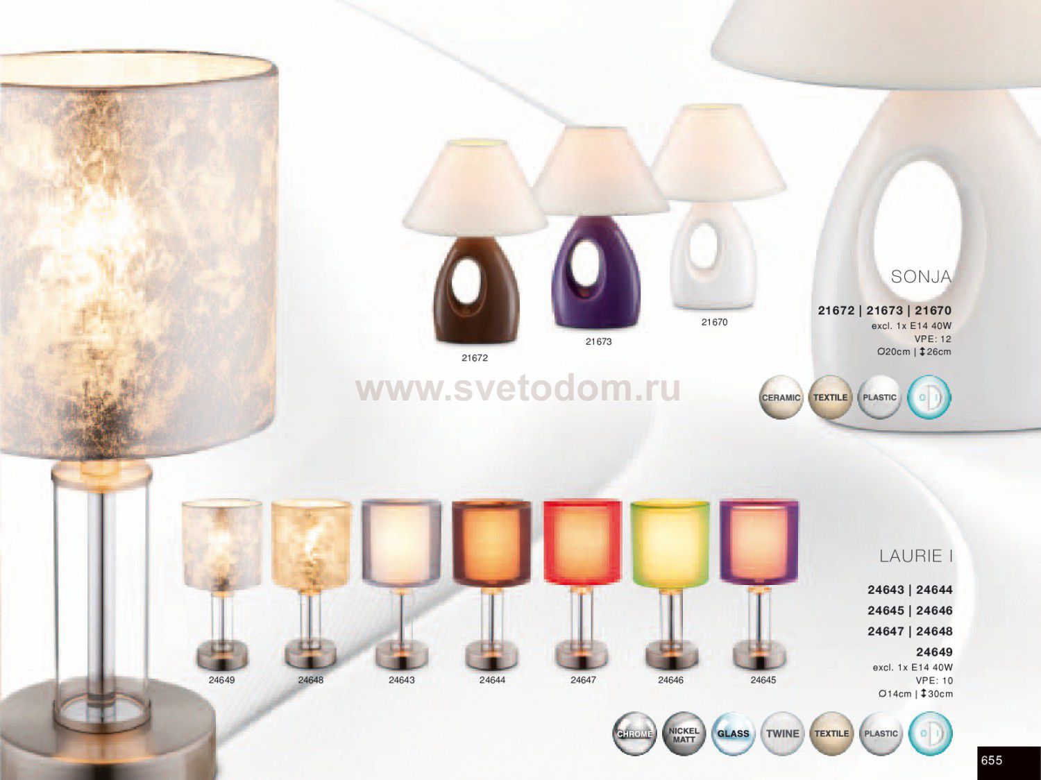 Настольная лампа – это не просто источник дополнительного освещения, но и оригинальный элемент декора. Его можно установить в спальне, гостиной, кабинете и других комнатах. Интернет-магазин «Светодом» предлагает настольные лампы разных стилей по доступным ценам. Благодаря большому ассортименту Вы обязательно найдете в нашем каталоге именно ту модель, которую искали. Настольная лампа Globo 24649 – прекрасный вариант для завершения интерьера. Ее можно включить одновременно с люстрой для более яркого освещения или без нее для создания уютной атмосферы, настраивающей на отдых. Купить настольную лампу Globo 24649 Вы можете с помощью виртуальной «Корзины» или по контактным номерам, указанным на сайте.