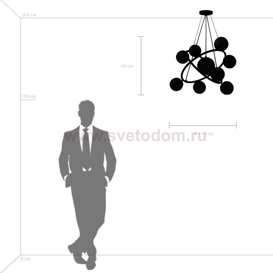 Высота min-max (см): 70-180; Ширина (см): 70; Вес (кг): 5,3; Кол-во ламп: 9хЕ14; Мощность max (W): 40; Цвет основания/цвет стекла или абажура: Matt Black/Gold; Штрих-код