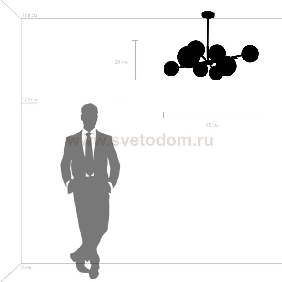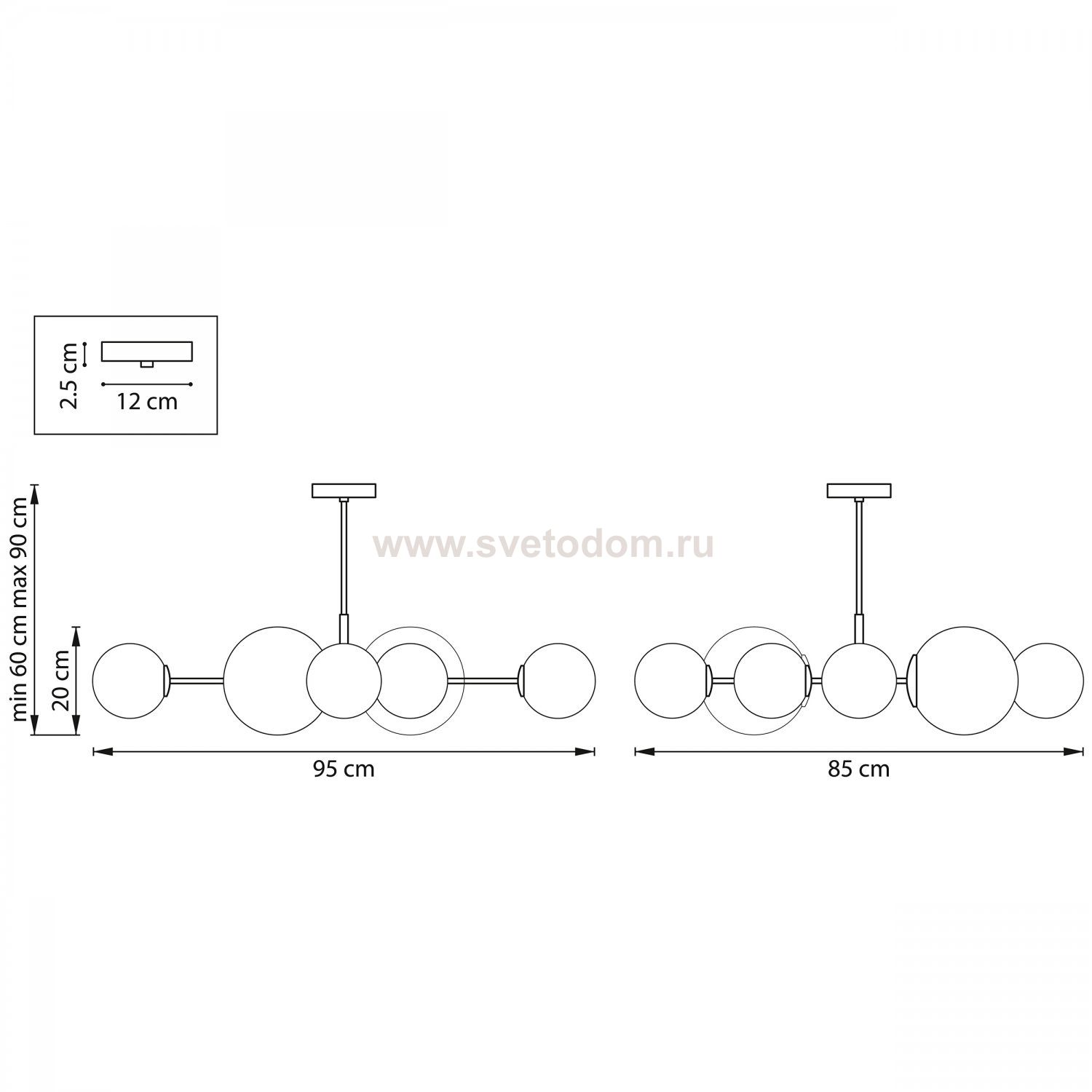 Высота min-max (см): 60-90; Ширина (см): 95*85; Вес (кг): 5,2; Кол-во ламп: 8хЕ14; Мощность max (W): 40; Цвет основания/цвет стекла или абажура: Matt Black/Gold; Штрих-код