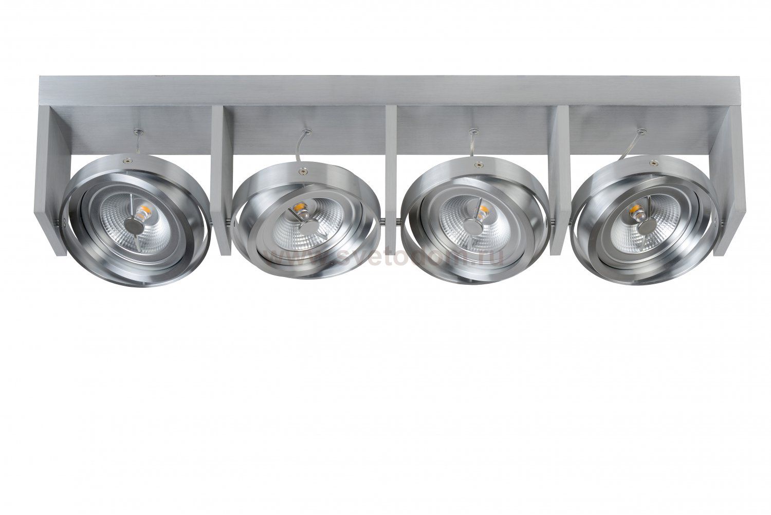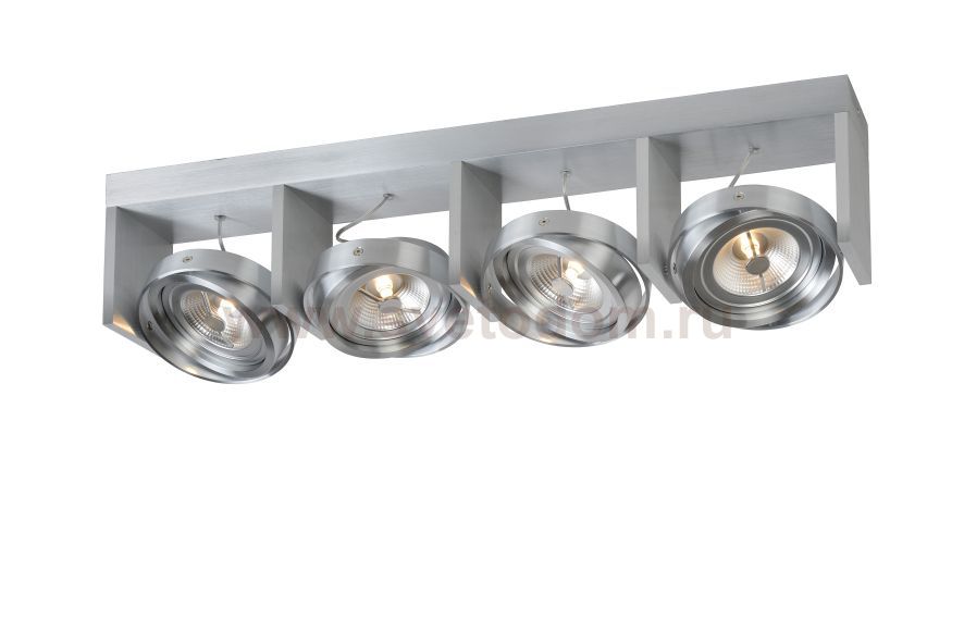 The mounted spot Zett 4-lights from Lucide is an armature made completely of aluminium and thus has a very high-quality look and feel. With a ceiling plate size of 16.2cm x 61.8cm, the Zett is easy to place over a central box. This magnificently beautiful spot is for anyone who can appreciate simplicity, design and top quality. With its four powerful, 360 degree swivelling and tilting LED spots, the Zett has multi-functional use. The Zett is namely fitted with four superior AR111 -12W - 24 degrees - dimmable - energy-saving LED light source (dimmer not included). With its warm, 2700K light colour and a light output of as much as 4 x 600 lumens, it really illuminates any desired object or space in a stylish way. The Zett spot is available in 1-, 2- and 4-light version, as well as in the colours of aluminium and white.