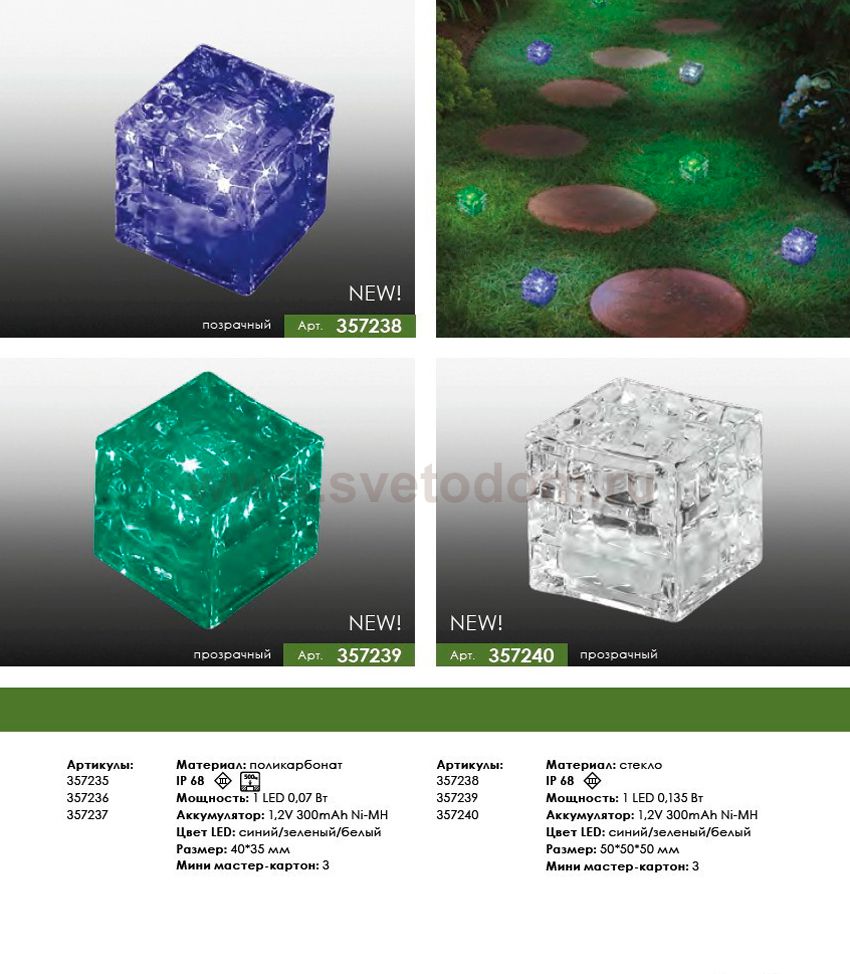 Декоративный уличный светодиодный светильник модели Novotech 357239 из серии TILE отличается следующим качеством: Преимущества темперированного стекла: Механическая прочность Стойкость к перепадам температур Безопасность: в отличии от обычного стекла темперированное, разбиваясь, образует осколки с тупыми нережущими гранями, не способными причинить вреда Экономичность (КПД порядка 90%), отсутствие токсичных элементов (не наносят вред здоровью, не требуют специальной утилизации), отсутствие ультрафиолетового излучения, пожаробезопасность (не нагреваются), морозостойкость, ударопрочность и устойчивость к вибрациям. Срок службы светодиодов - 30000 часов. Время автономной работы - 6 часов. Диапазон рабочих температур от -25 до +75 градусов Цельсия.