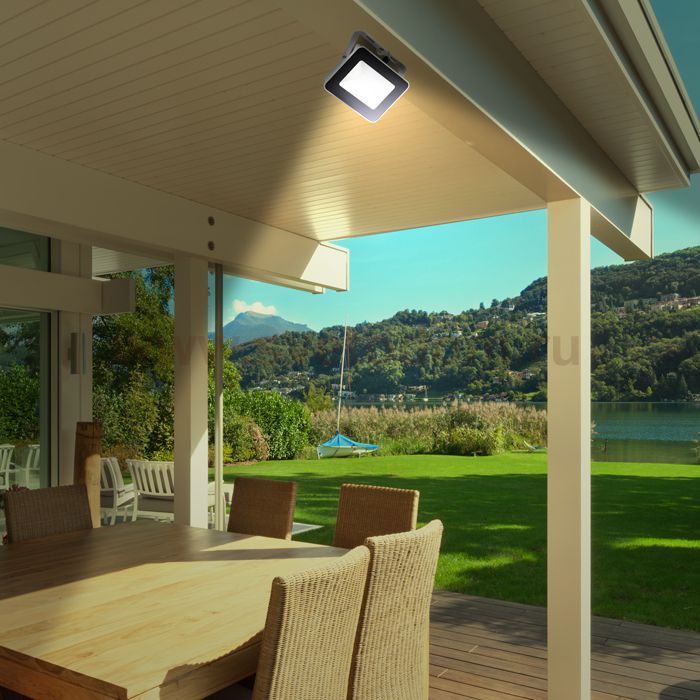 Светодиодный прожектор для уличного освещения обеспечивает интенсивную подсветку объекта при низком потреблении электроэнергии. Он надежен, прост в монтаже и удобен в эксплуатации. Оснащен микроволновым датчиком движения - внутри корпуса. Дальность обнаружения движения: Высота: от 1 до 3,5м; Расстояние: от 5 до 8м; Время работы сенсора: 30 секунд; Угол обнаружения движения: 360°. Безопасность