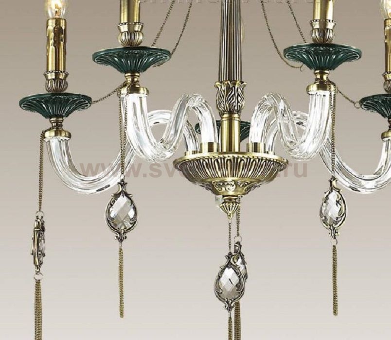 Грациозная люстра 3984 / 5 линии Vienna выполнена в классическом стиле. Люстру украшают прозрачные стеклянные элементы, металлическая арматура цвета золото, а также тонкие декоративные цепочки, придающие светильнику легкость, изящество и особое очарование. Темно - зеленые декоративные вставки - важный элемент и главная изюминка светильника, придающая ему невероятную выразительность, индивидуальность и шик. Цоколь E14. Мощность 5*40W. Нет ламп в комплекте.