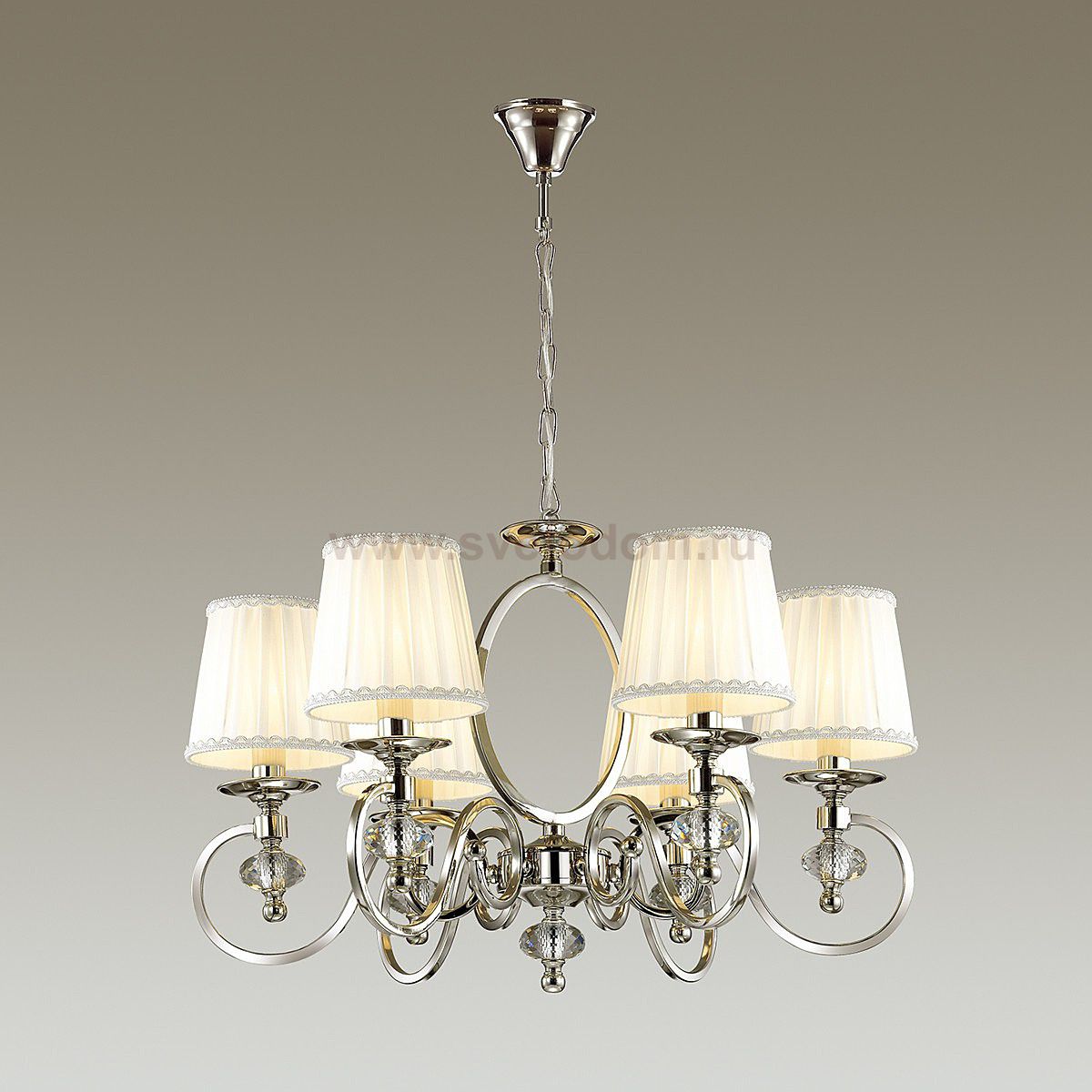 Арматура, декор: металл, хрусталь; абажур: ткань Материал плафона