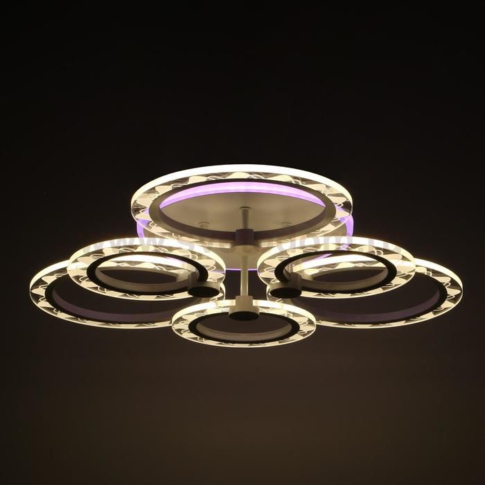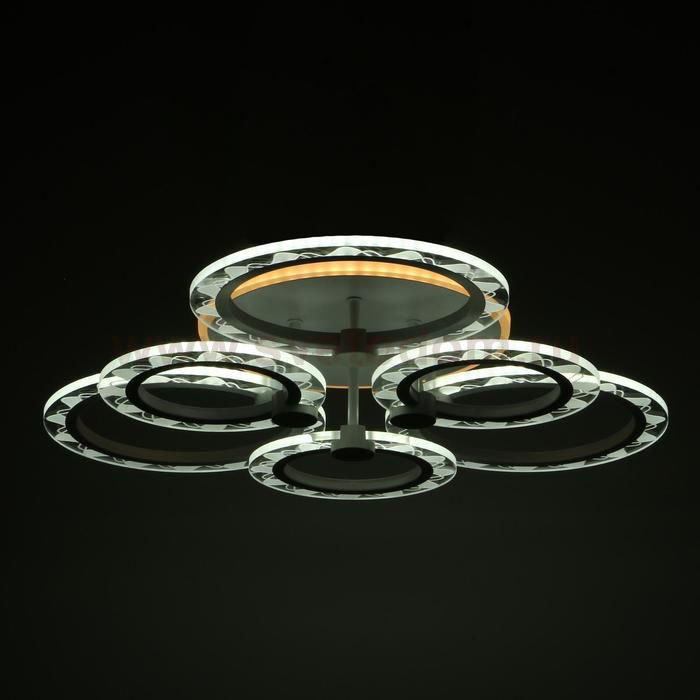 Светодиодный светильник с пультом выполнен в современном стиле. Модная и стильная люстра подойдёт для интерьера детской, гостиной, зала, спальни, прихожей или кухни. С помощью пульта можно плавно регулировать температуру света — от 3 000 до 6 000 К; и яркость — от ночника до полной мощности свечения. Батарейки в комплект не входят. Изделие выполнено из качественного металла, пластика и светодиодов. Срок службы люстры в домашних условиях — 20 000 часов. Подходит для помещений с низкими потолками и для натяжных потолков. Осветит комнату площадью до 15 м?. |