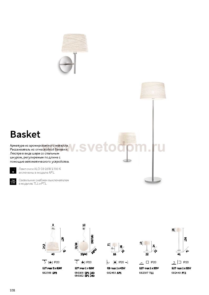 Светильник бра Ideal Lux BASKET AP1 сделает Ваш интерьер современным, стильным и запоминающимся! Наиболее функционально и эстетически привлекательно модель будет смотреться в гостиной, зале, холле или другой комнате. А в комплекте с люстрой и торшером из этой же коллекции сделает интерьер по-дизайнерски профессиональным и законченным.