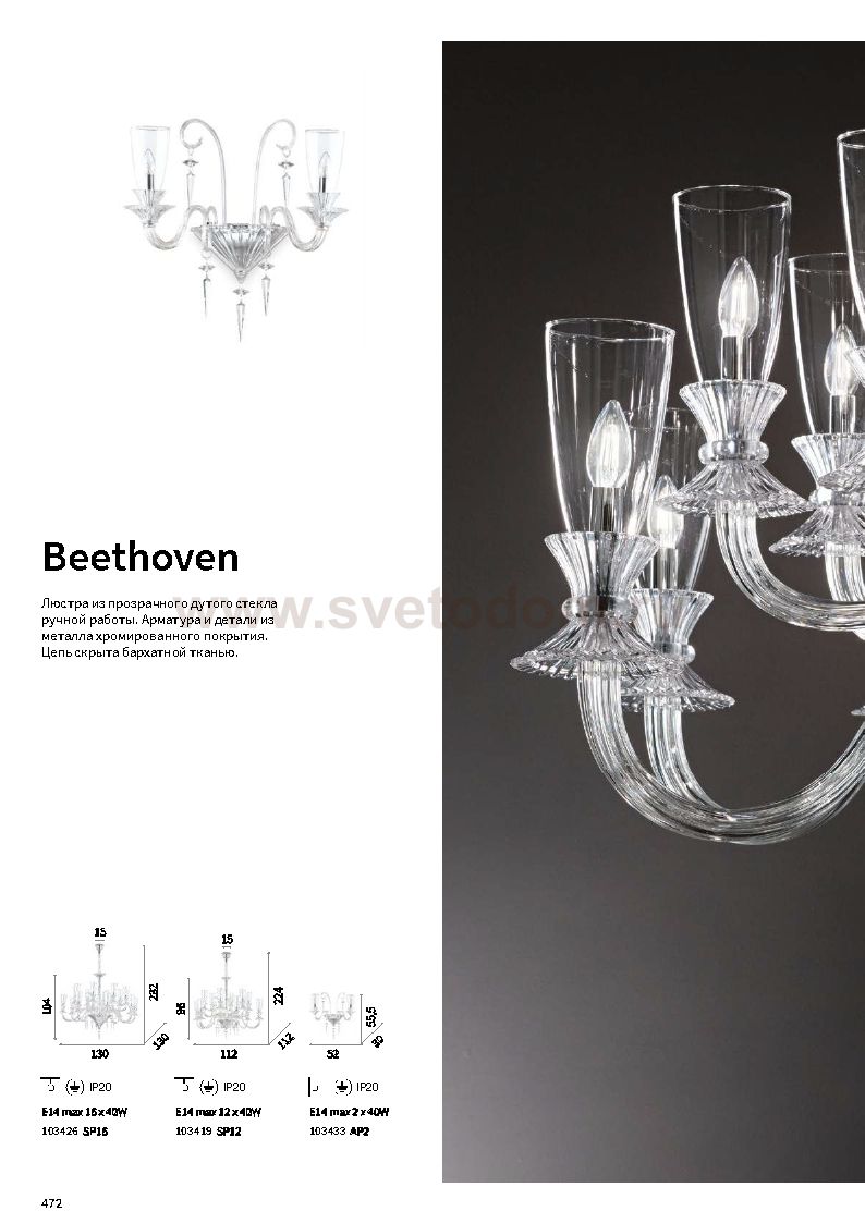 Светильник бра от известной итальянской фабрики Ideal lux из каталога Classico в современном стиле под артикулом BEETHOVEN AP2 (103433) серии BEETHOVEN имеет ряд отличительных характеристик: Люстра из прозрачного дутого стекла ручной работы. Арматура и детали из металла хромированного покрытия. Цепь скрыта бархатной тканью.