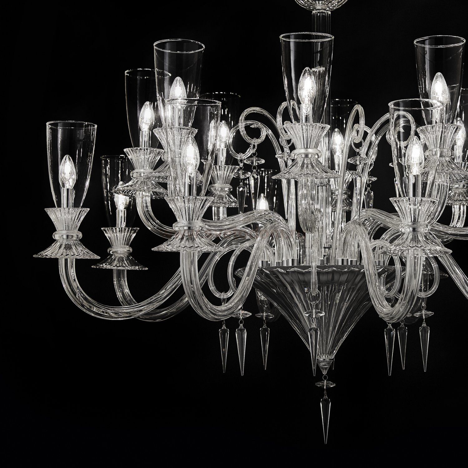 Люстра от известной итальянской фабрики Ideal lux из каталога Classico в современном стиле под артикулом BEETHOVEN SP16 (103426) серии BEETHOVEN имеет ряд отличительных характеристик: Люстра из прозрачного дутого стекла ручной работы. Арматура и детали из металла хромированного покрытия. Цепь скрыта бархатной тканью.