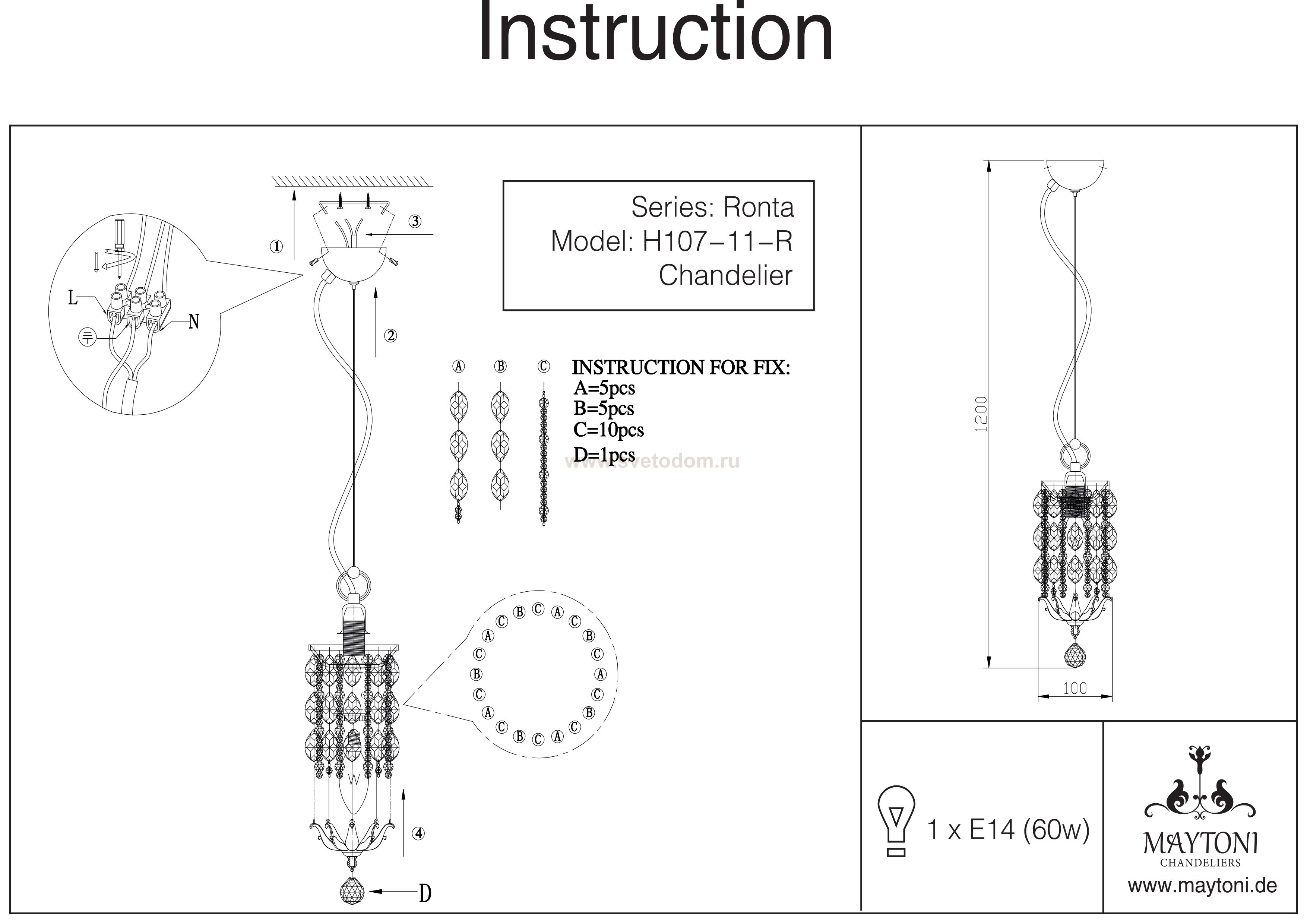 Каркас из металла. Плафоны выполнены из *хрустальных подвесок. Дополнительно