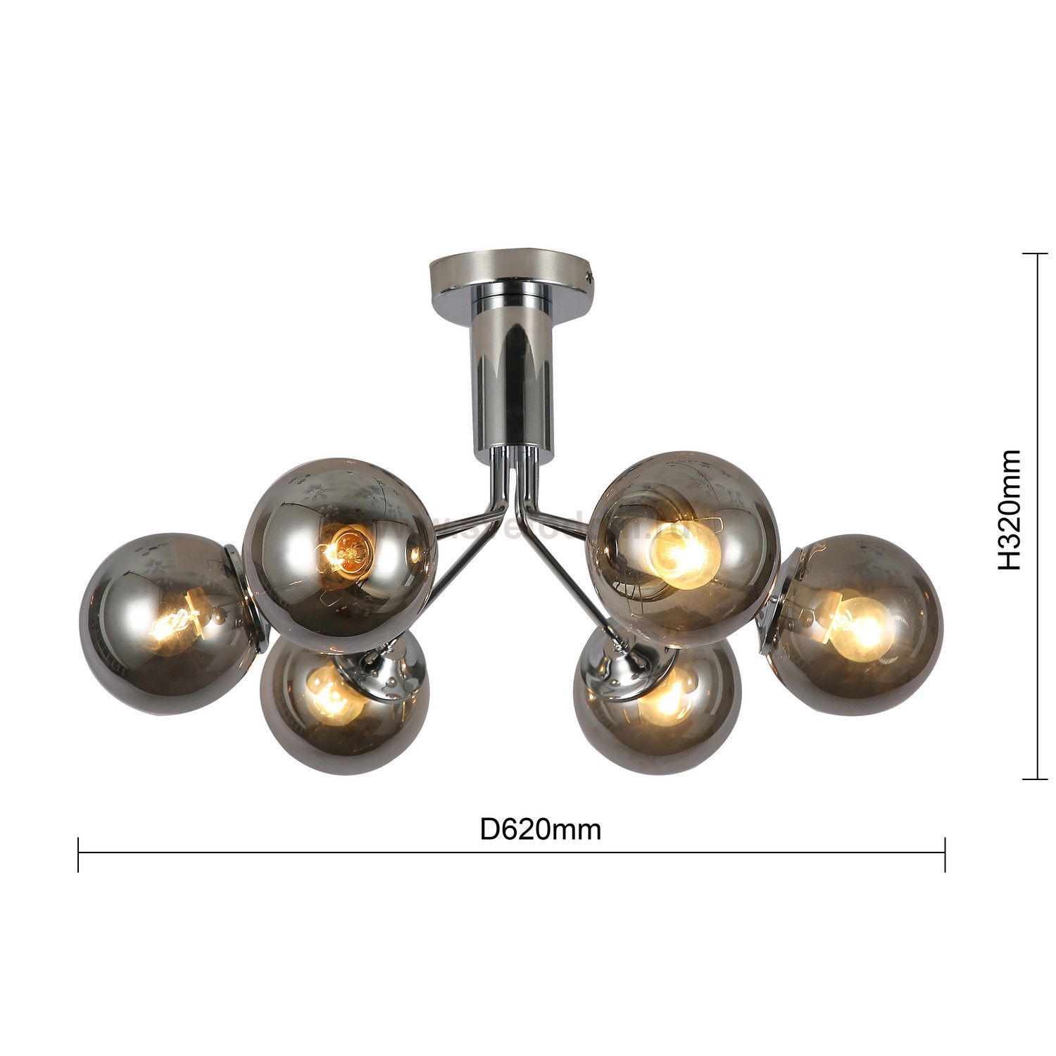 Каркас цвета хром, плафоны из стекла дымчато-серого цвета Цвет декора