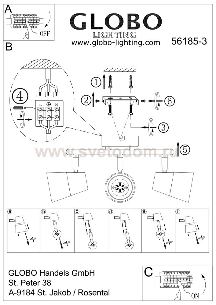 Светильники-споты – это оригинальные изделия с современным дизайном. Они позволяют не ограничивать свою фантазию при выборе освещения для интерьера. Такие модели обеспечивают достаточно качественный свет. Благодаря компактным размерам Вы можете использовать несколько спотов для одного помещения. Интернет-магазин «Светодом» предлагает необычный светильник-спот Globo 56185-3 по привлекательной цене. Эта модель станет отличным дополнением к люстре, выполненной в том же стиле. Перед оформлением заказа изучите характеристики изделия. Купить светильник-спот Globo 56185-3 в нашем онлайн-магазине Вы можете либо с помощью формы на сайте, либо по указанным выше телефонам. Обратите внимание, что у нас склады не только в Москве и Екатеринбурге, но и других городах России.