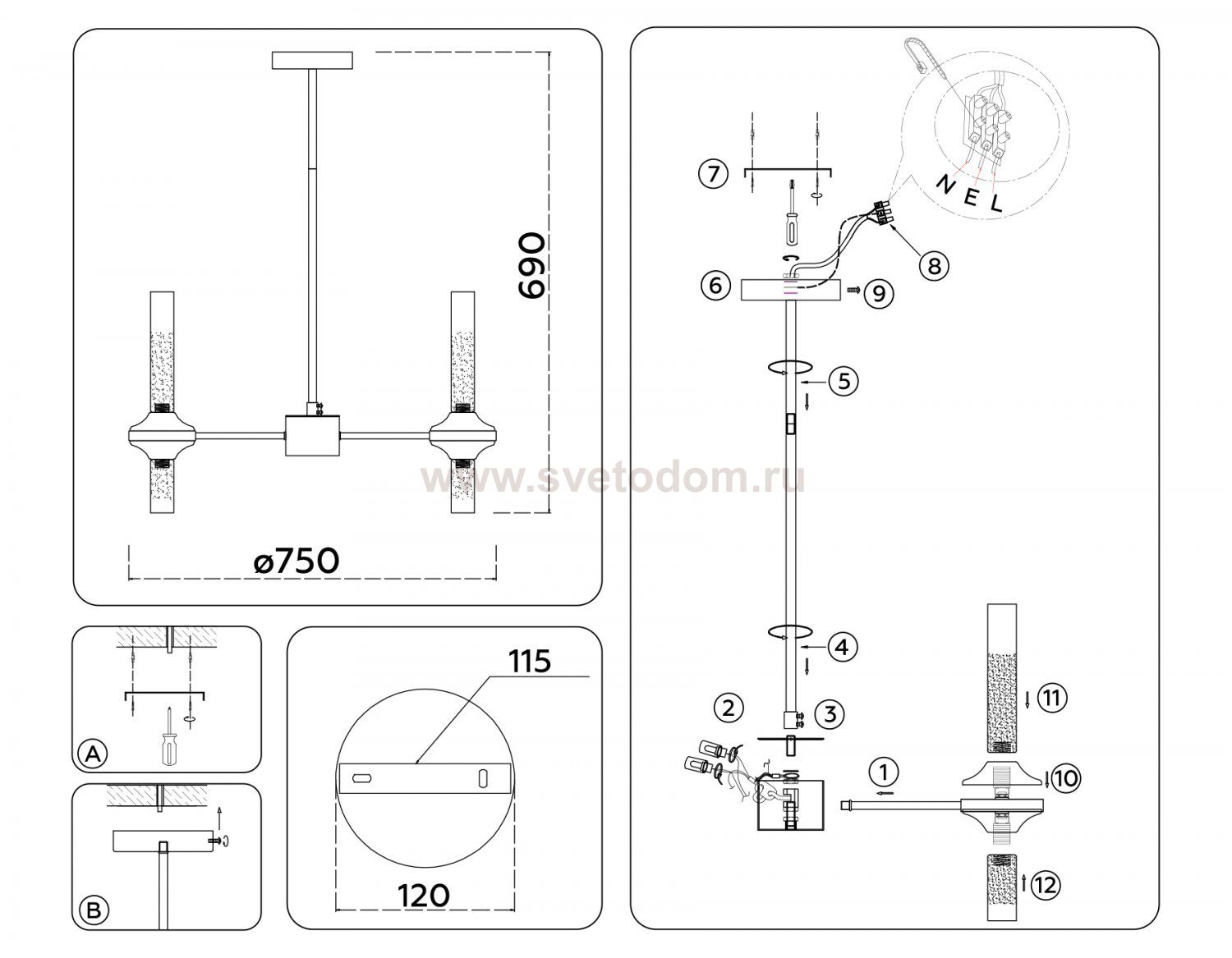 ![]() Люстра на штанге Ambrella LH55258/9 BK/BS/CL черный/латунь/прозрачный E14*9 max 40W D770*530 19990 руб.