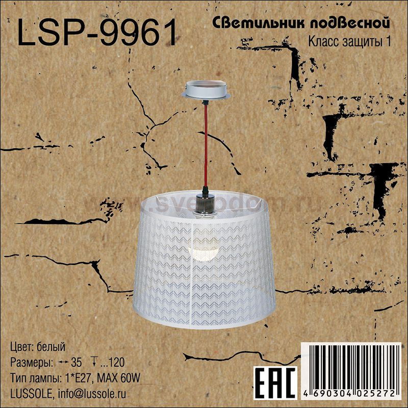 Подвес LSP-9961 отличается регулировкой по высоте и сделает Ваш интерьер современным, стильным и запоминающимся! Наиболее функционально и эстетически привлекательно модель будет смотреться в гостиной, зале, холле или другой комнате. А в комплекте с люстрой, бра или торшером из этой же коллекции сделает ремонт по-дизайнерски профессиональным и законченным.