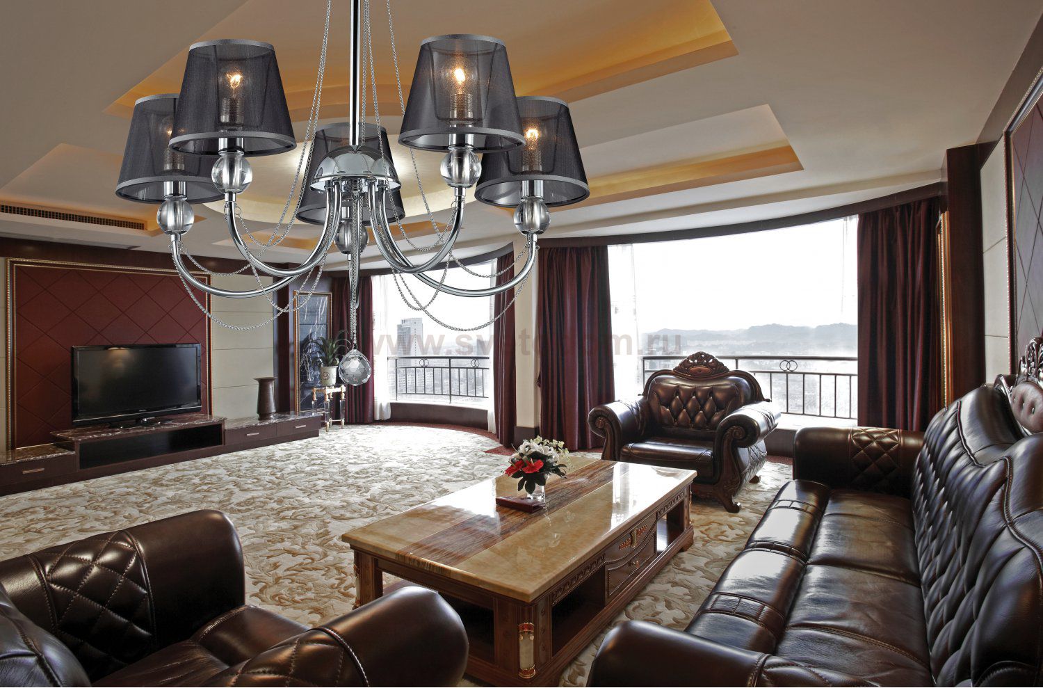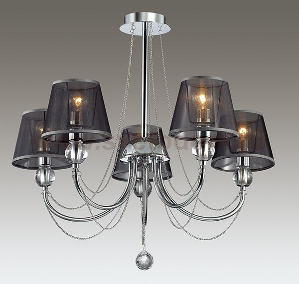 Люстра 3228/5 линии Asanta оформлена в современном стиле. Люстра состоит из абажуров из органзы актуального темного оттенка, и хромовой арматуры, украшенной декоративными цепочкам, стеклянными элементами в виде шара и хрустальной подвеской. Эта модель является ярким примером строгой современной элегантности. Цоколь Е14. Мощность 5x40W. Нет ламп в комплекте.