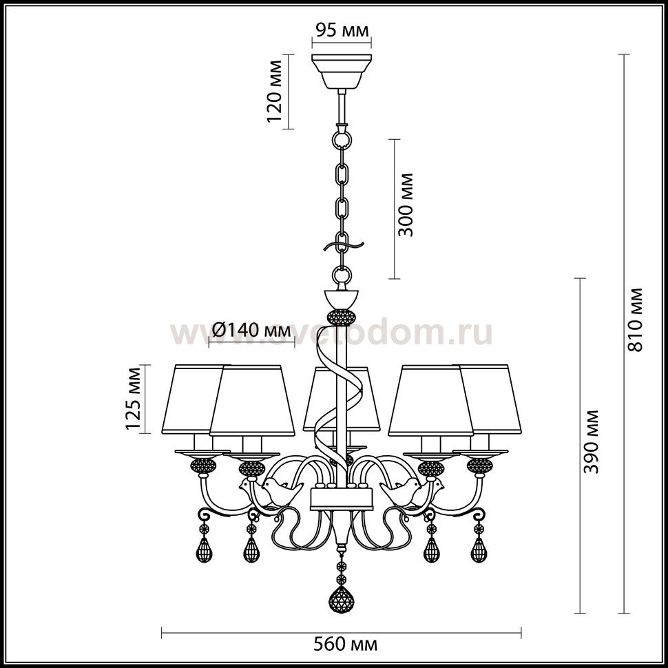 Арматура, декор: металл, хрусталь; абажур ткань Материал плафона