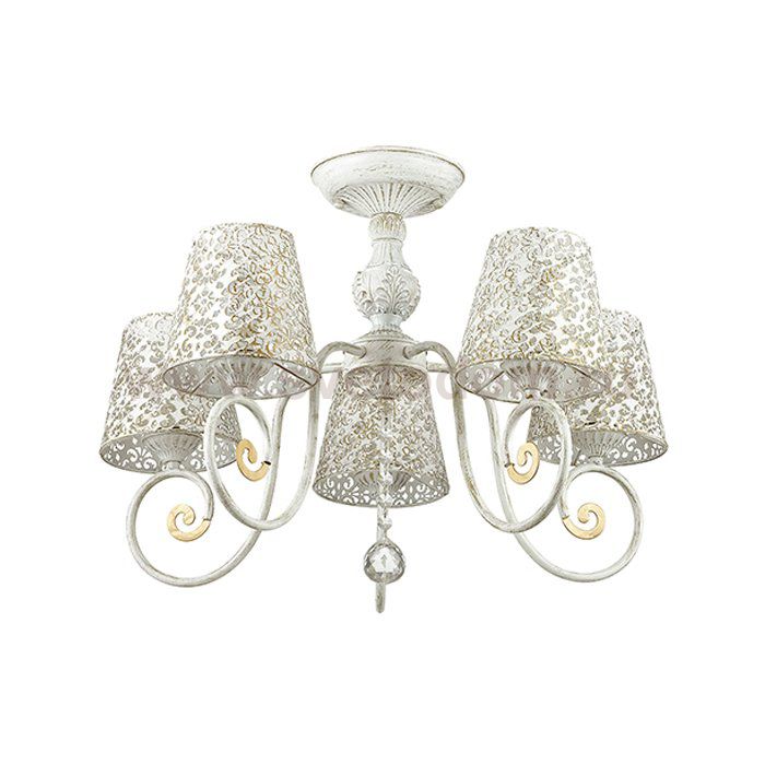 Легкая ажурная линия Izidora в белом цвете с золотой патиной создана быть жемчужиной интерьера. Плафоны из металла с резным кружевом создадут потрясающие световые эффекты.
