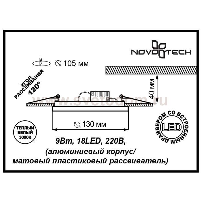 Встраиваемый светодиодный светильник на базе светодиодных источнтков света модели Novotech 357168 из серии LUNA отличается следующим качеством: Корпус светильника произведен из алюминия. Это металл, основными достоинствами которого являются — устойчивость к практически всем видам негативного воздействия окружающей среды, коррозии, небольшой вес, по сравнению с другими видами металла и экологическая безопасность материала. Рассеиватель сделан из матового пластика. Он отличается повышенной стойкостью к механическим повреждениям и защищенностью от факторов внешней среды.
